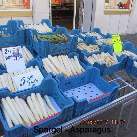 There was a good street market selling mainly fresh vegetables and fruit, and of course because it’s in season, Spargel – asparagus .