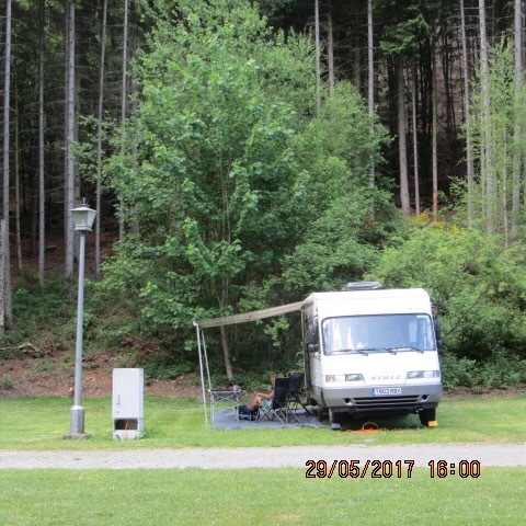 We got to the camp site ” Camping Perlenau” at Monschau in the Eiffel Natur park at 2.30 pm a distance of 120 miles. We filled up with fuel outside Monschau and since the last fill we have managed an average of 31 mpg.