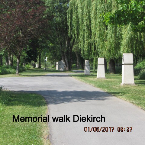 This morning we walked to Diekirch, the route from the campsite is along the river that runs in front of Homer, the path is paved and super smooth, superb for walking and cycling, a part of the walk passes through a memorial park which has 13 granite columns and on each one is a metal plaque showing the suffering of the locals during the second world war. Just past that a new footbridge had been constructed and a part of the river diverted to make a water course for canoeing.