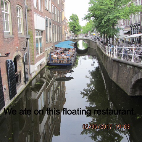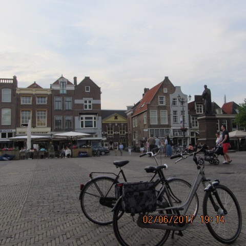 After a shower we walked into Delft, about one mile away, we walked along the canals into the centre square. We found a restaurant which had a floating platform to eat on, the woman on reception sent us on ahead and Michelle tried to unbolt a door to get out and would have gone feet first into the canal had I not stopped her! After the meal we moved back into the main square for a drink at a street cafe and watched the numerous bikes whizz past. A slow walk back saw us return to Homer at 10 pm.