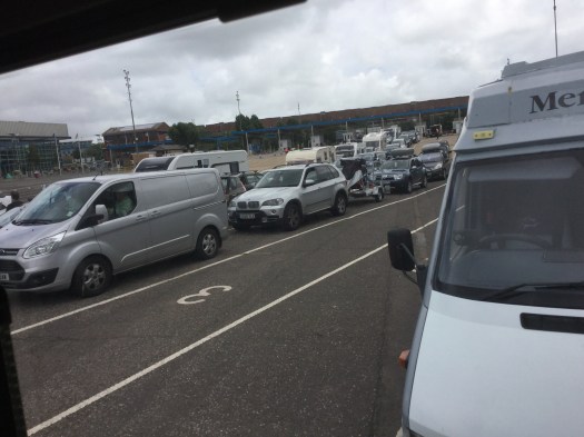 We arrived at Portsmouth without incident at 12.15 where we queued for ages at the ticket booth, there are lots of caravans on the move and they were being measured with a trundle wheel to make sure they weren’t longer than the owners had claimed!