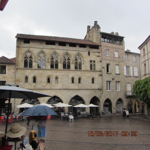 Our first stop of the day was Figeac, we pulled into an Aire approx 100m from the city centre and used its facilities to fill up with water, dump our rubbish and empty the toilet, we then walked into town and it poured with rain, wet legs and feet. We had a good wander around and did some food shopping in Casino. It’s a lovely place and I would visit again.