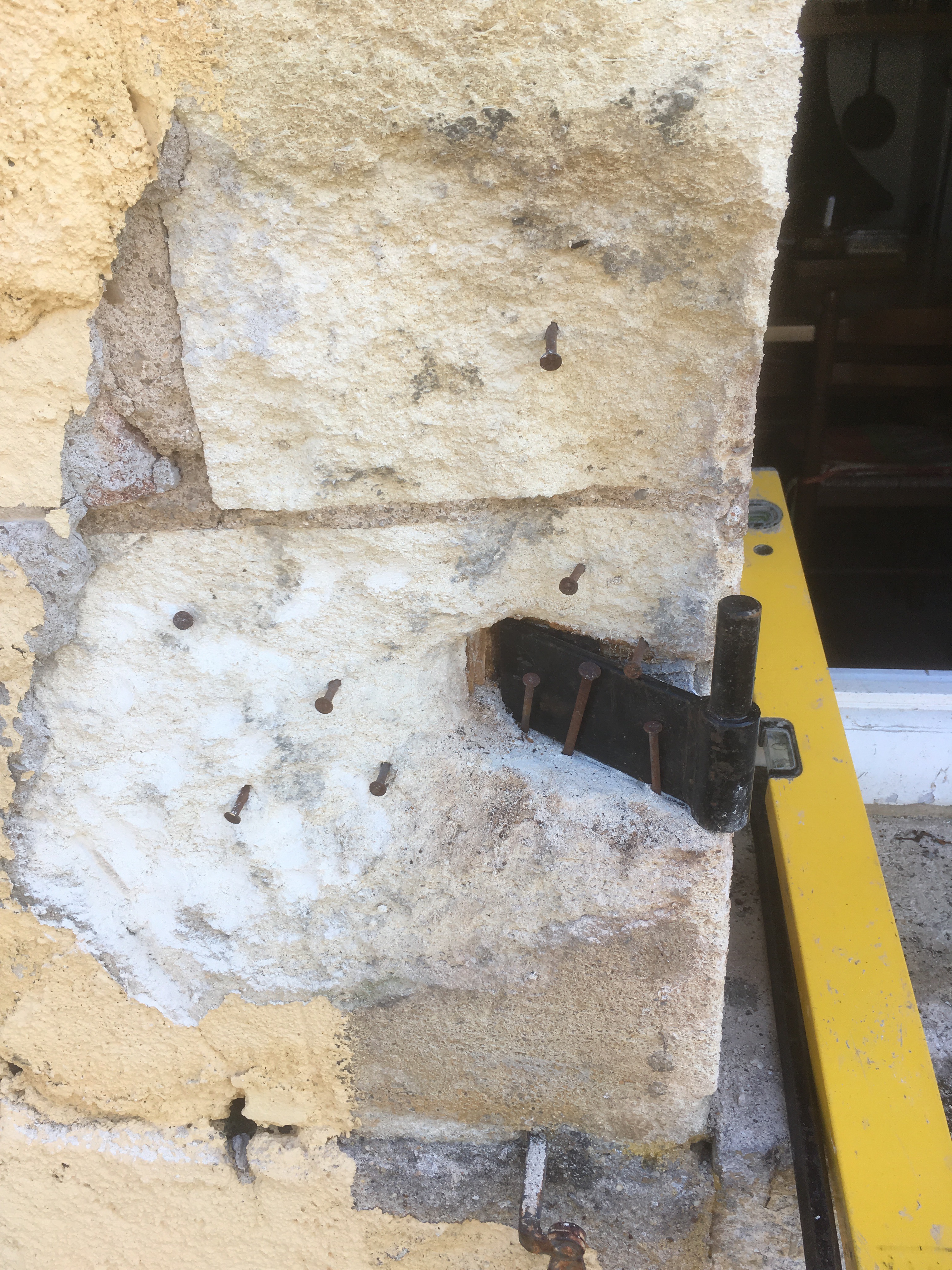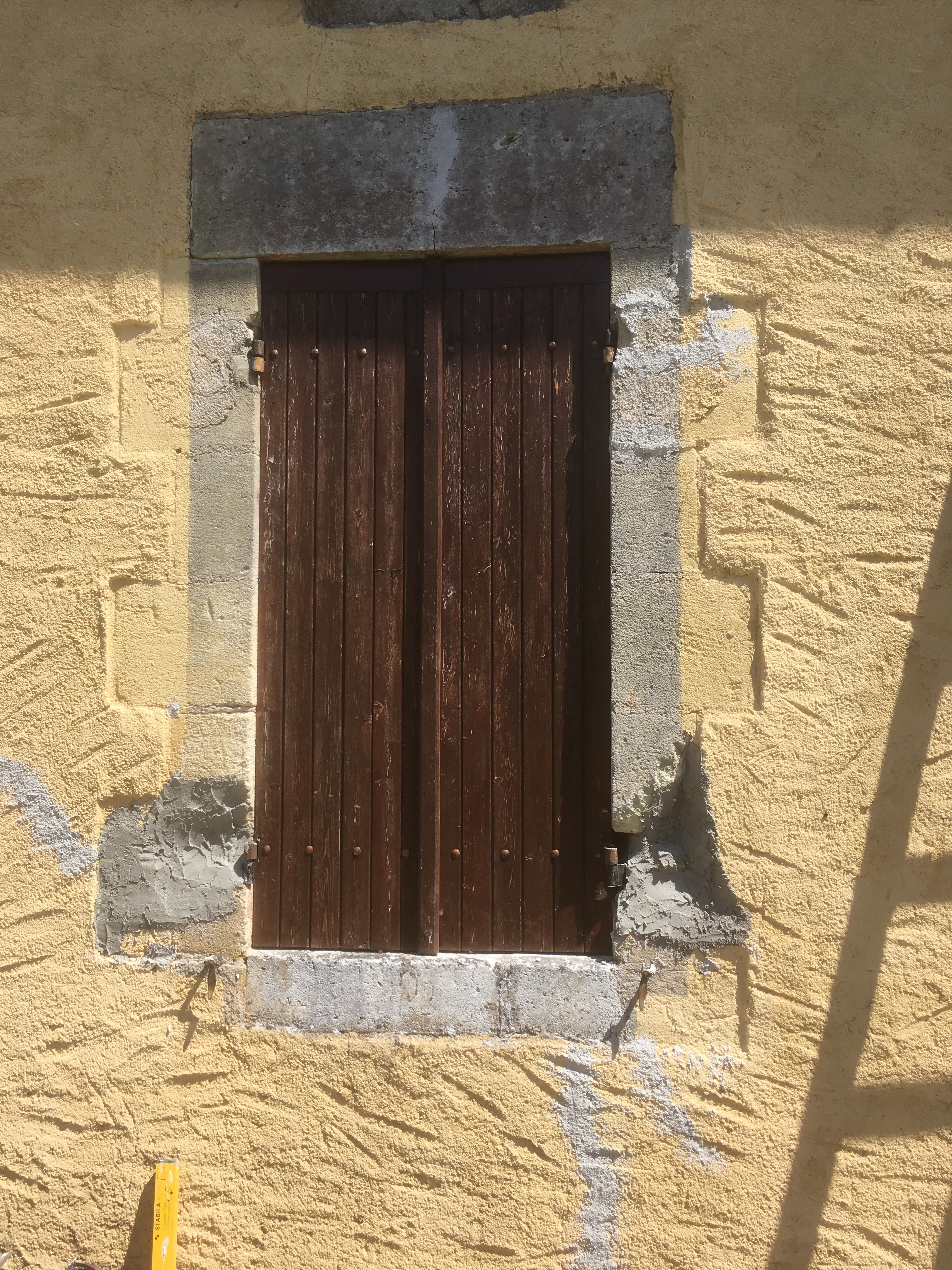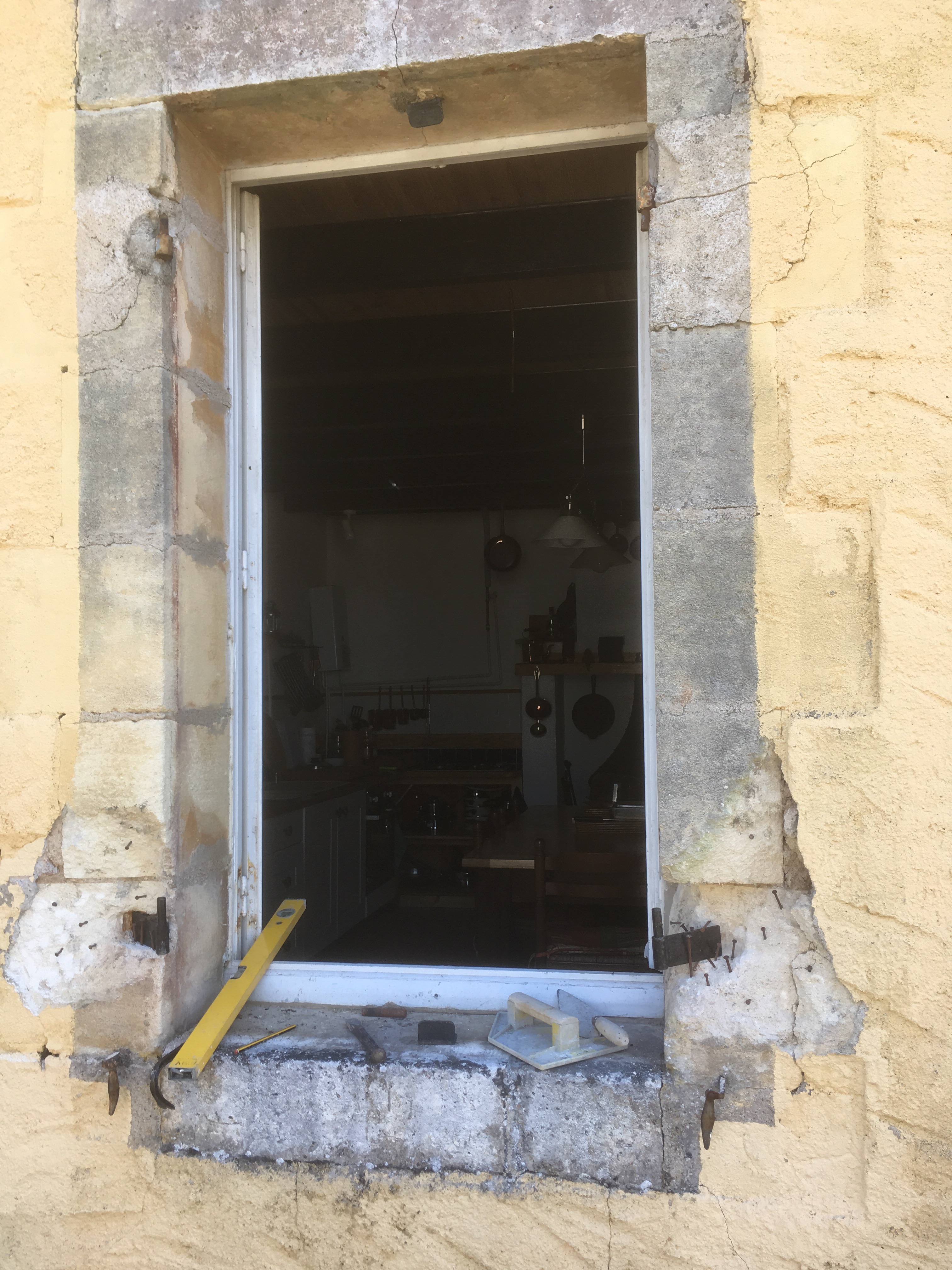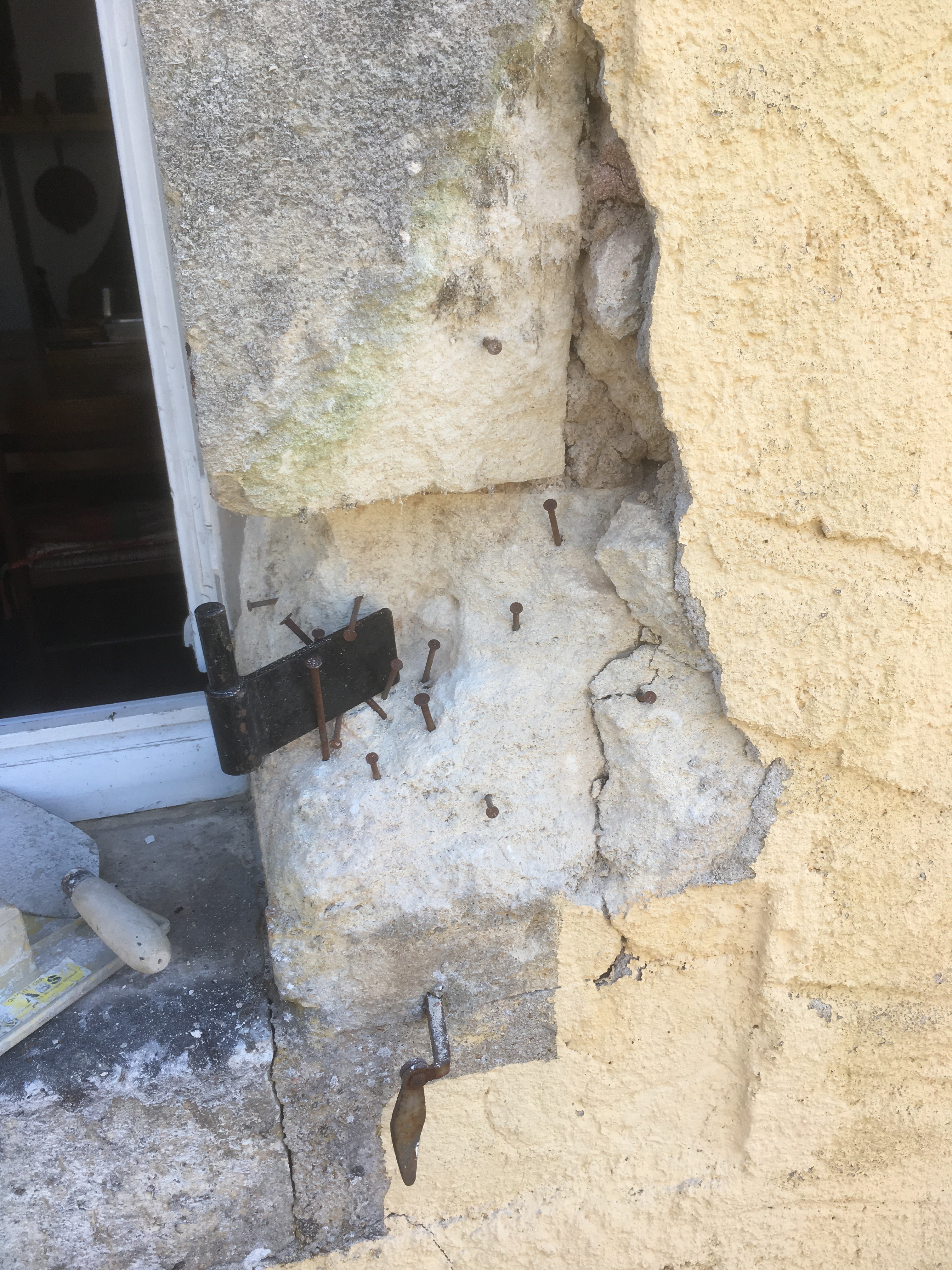 Not that 50:50 saw much of the sunshine yesterday she was emulsioning the walls in the barn lounge, of course being white paint she came out paler than when she went in. I was busy outdoors, not planned to take advantage of the sunshine of course, but involved in a repair job. When Michelle opened the kitchen shutters upon our return from our trip away a chunk of masonry around the hinge fell off, it’s a repair job that has been on my list for a while so now I had no opportunity but to get on with it.