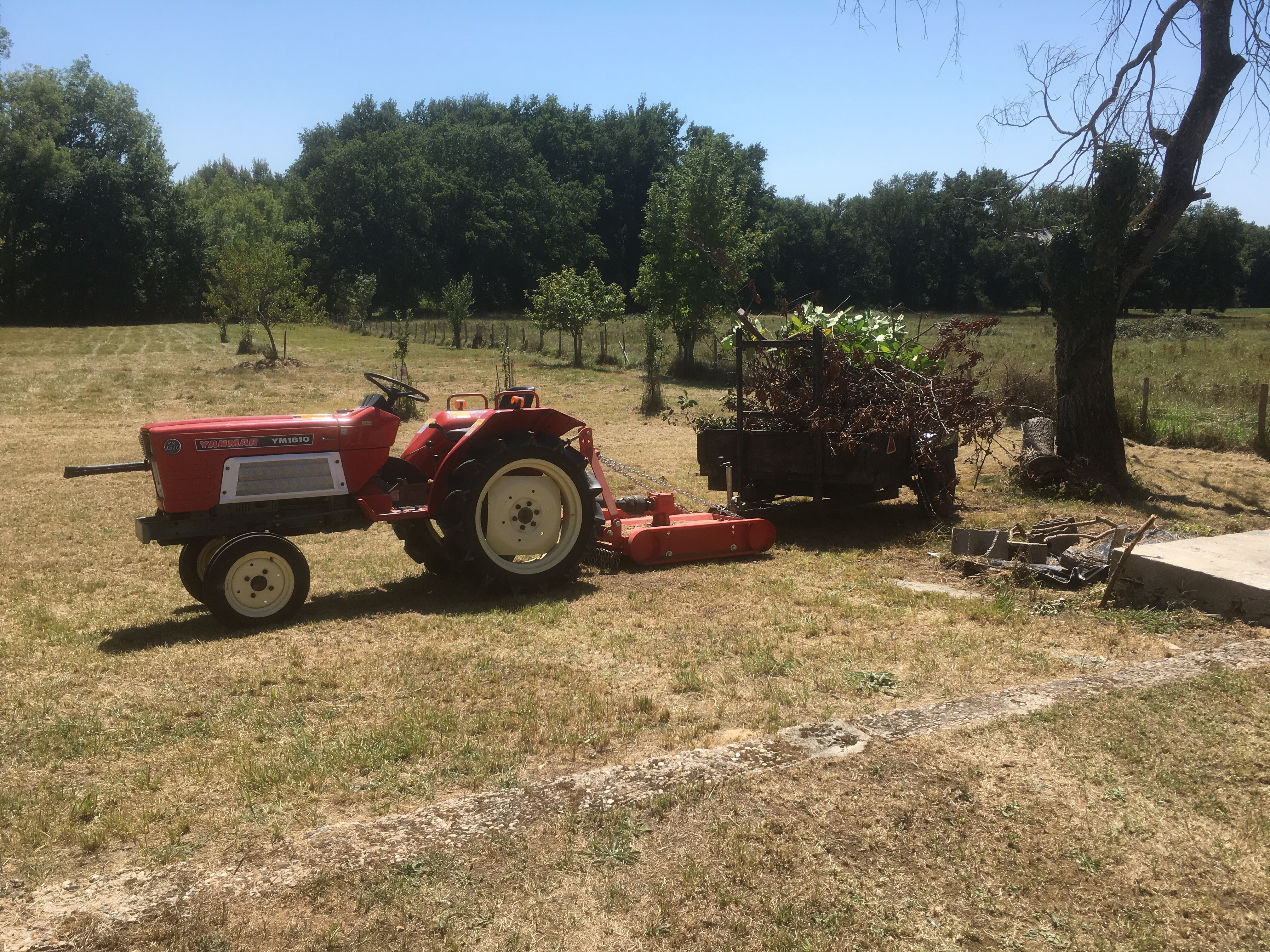 I wrote in the last roundup newsletter that I’d fixed a tow bar to the grass cutter on the rear of the tractor to tow the trailer, here it is in action.