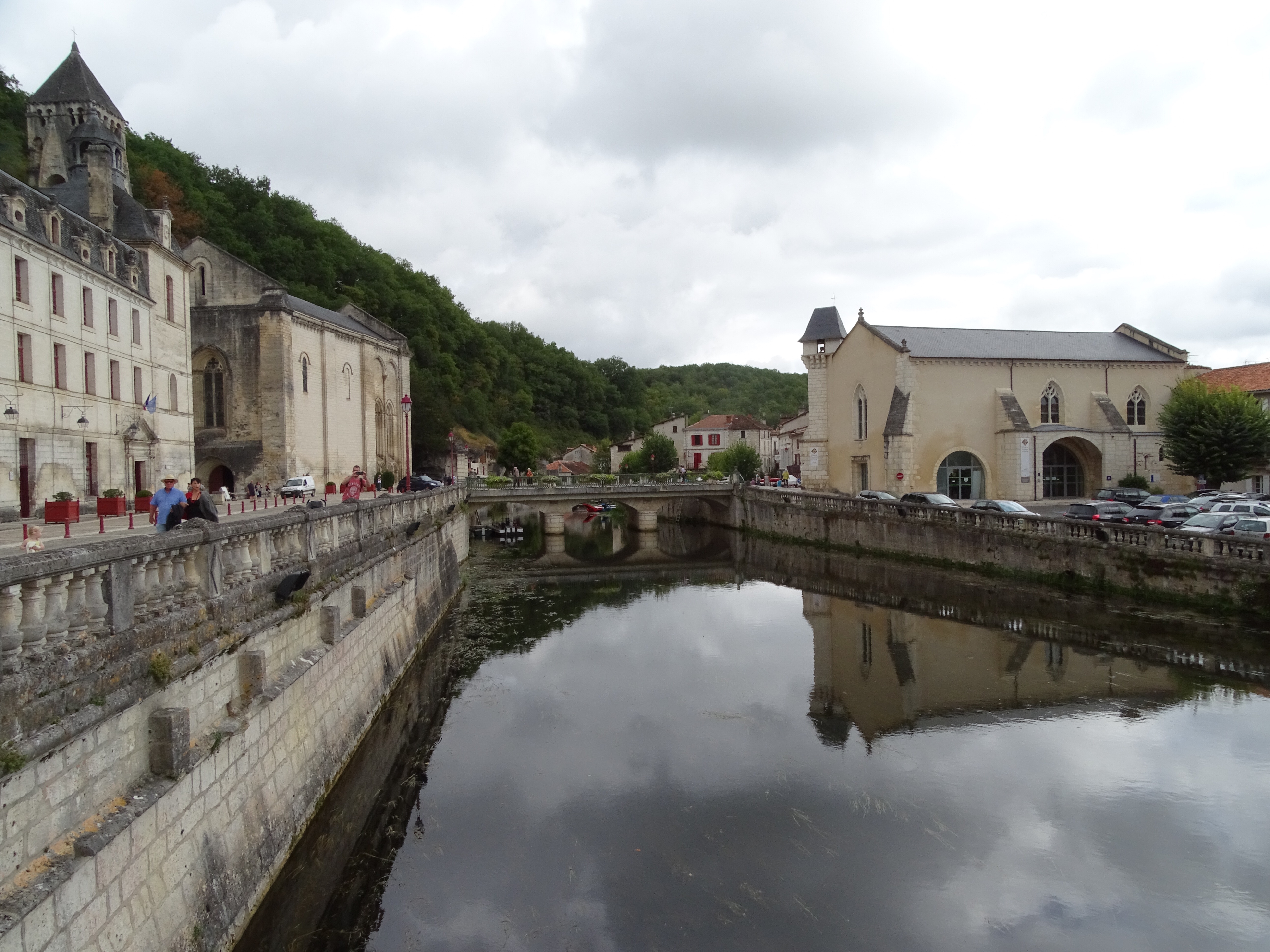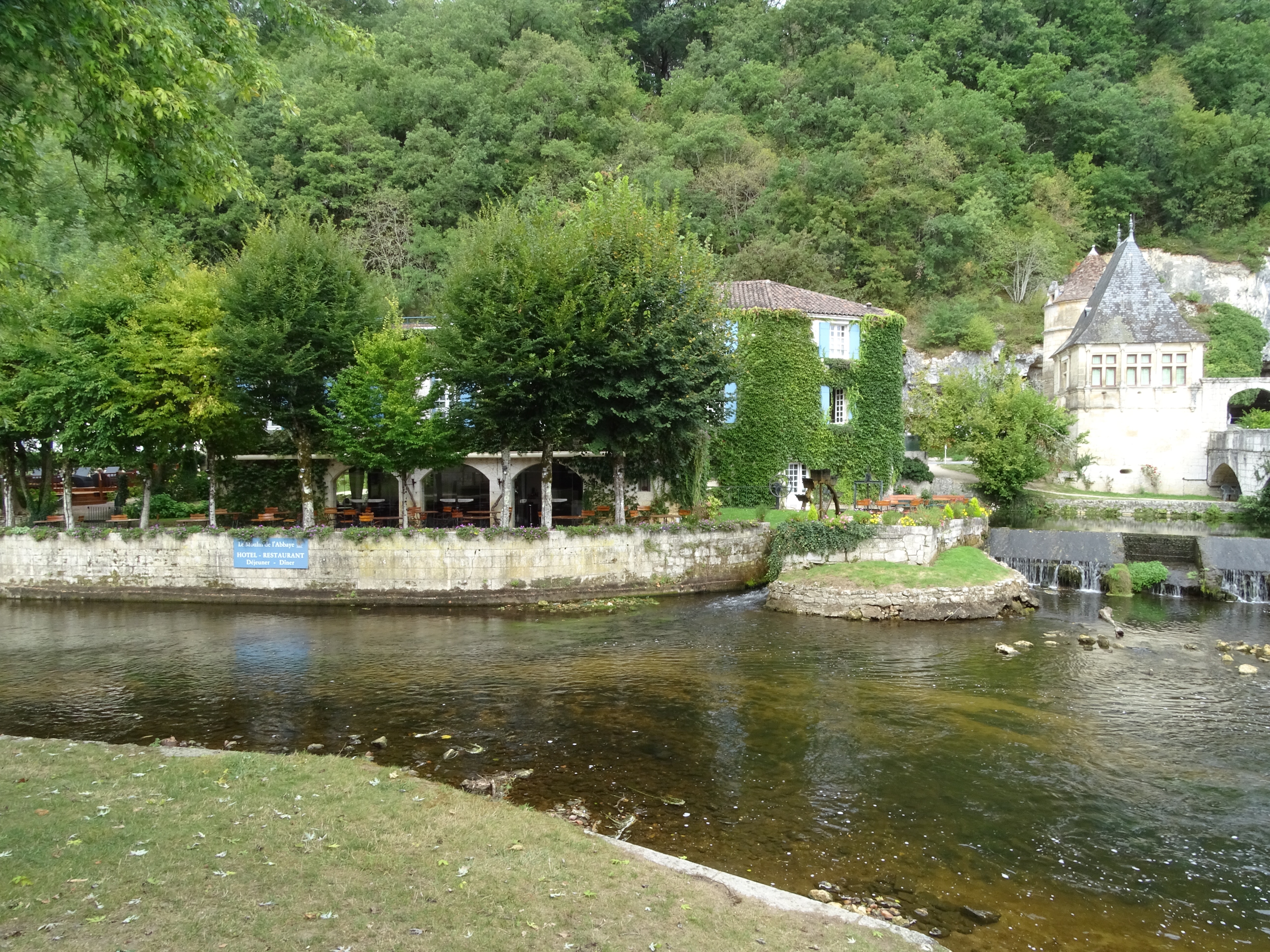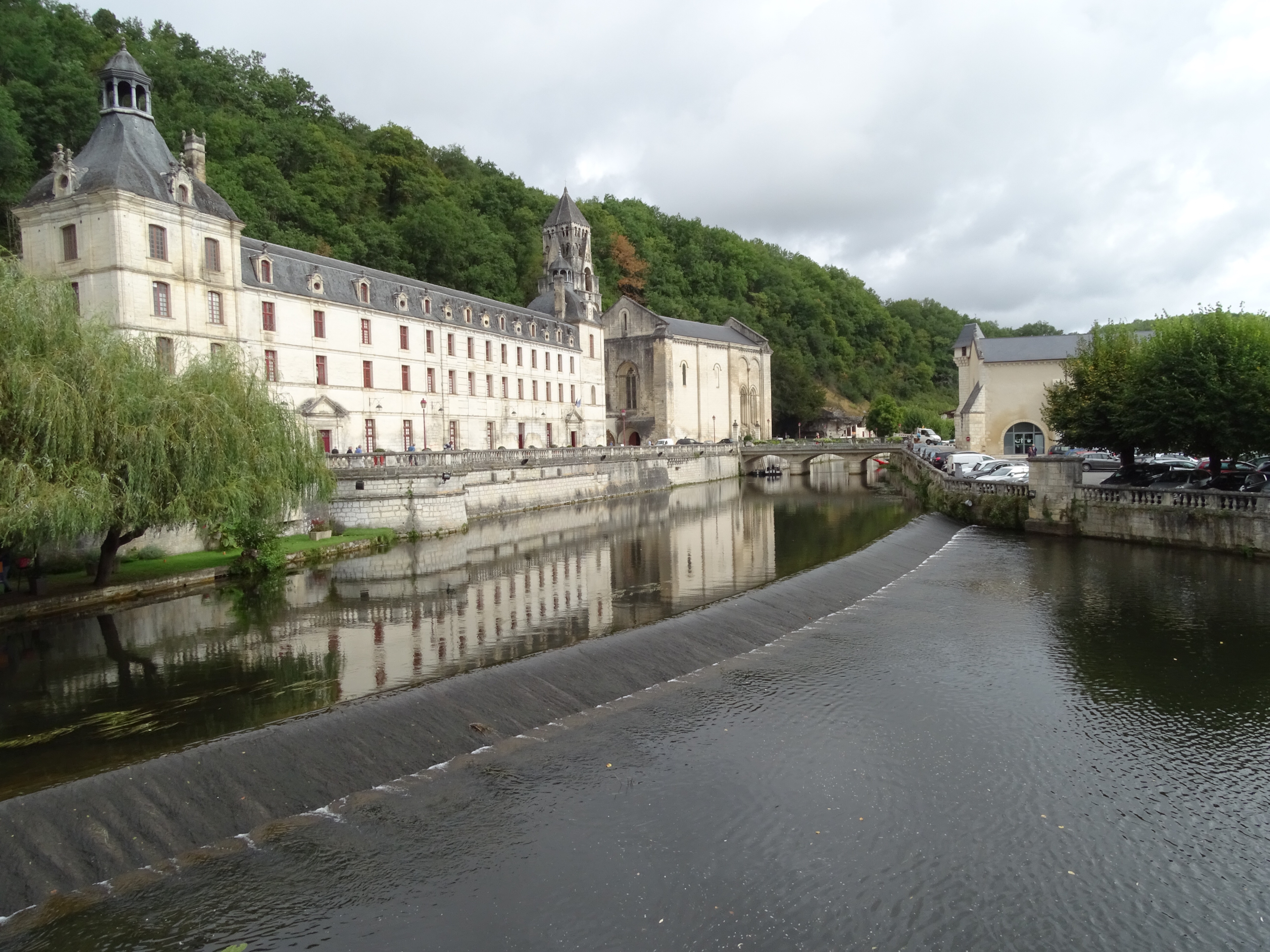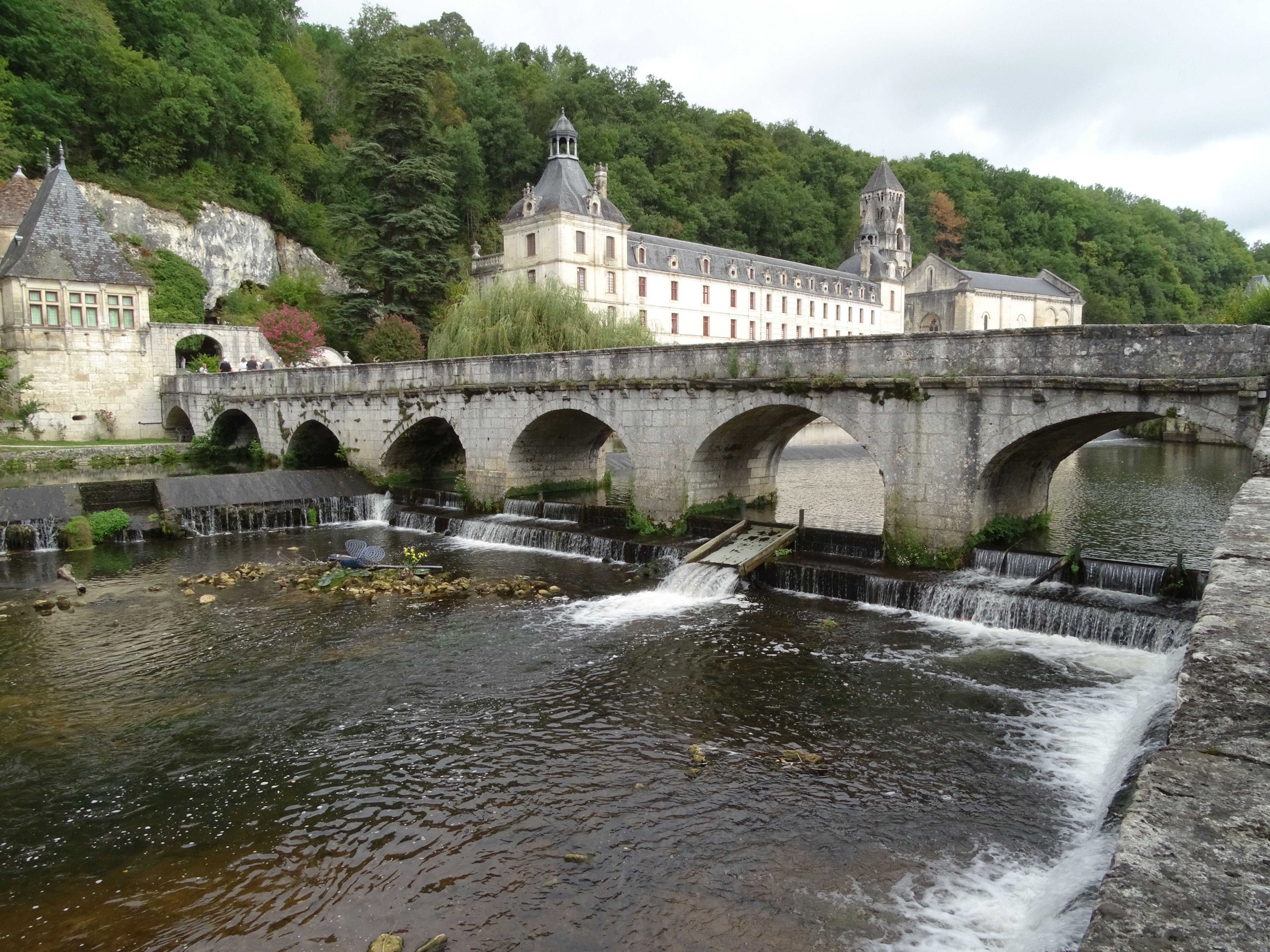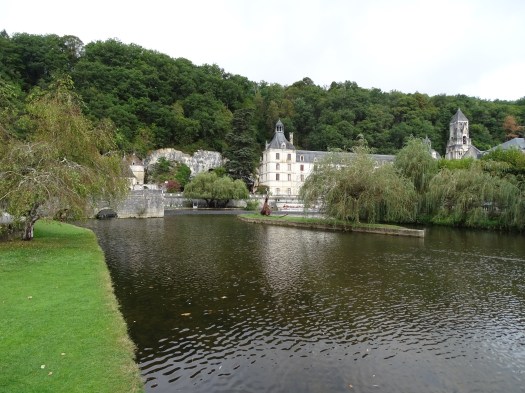 Today we visited Brantome a pretty town about a 90 minute drive to the north west of us. We were last here a few years ago as a family and decided to enjoy the hire of canoes and paddle around the outskirts of the town as many tourists do. Unfortunately a decision was made for the three daughters to share a canoe, working together isn’t one of their strengths and when they came to the part where you had to get over a weir, they got stuck on the top.