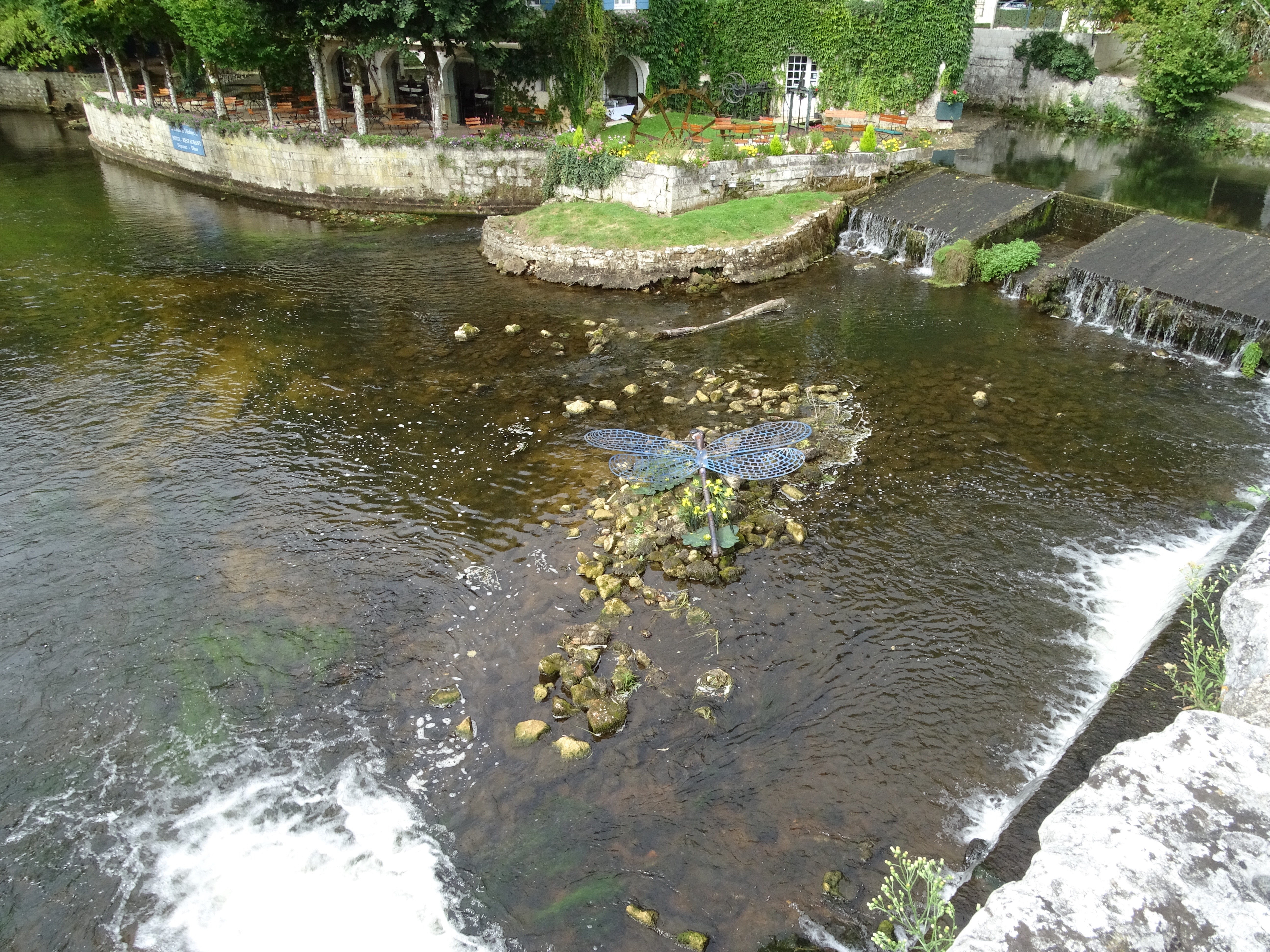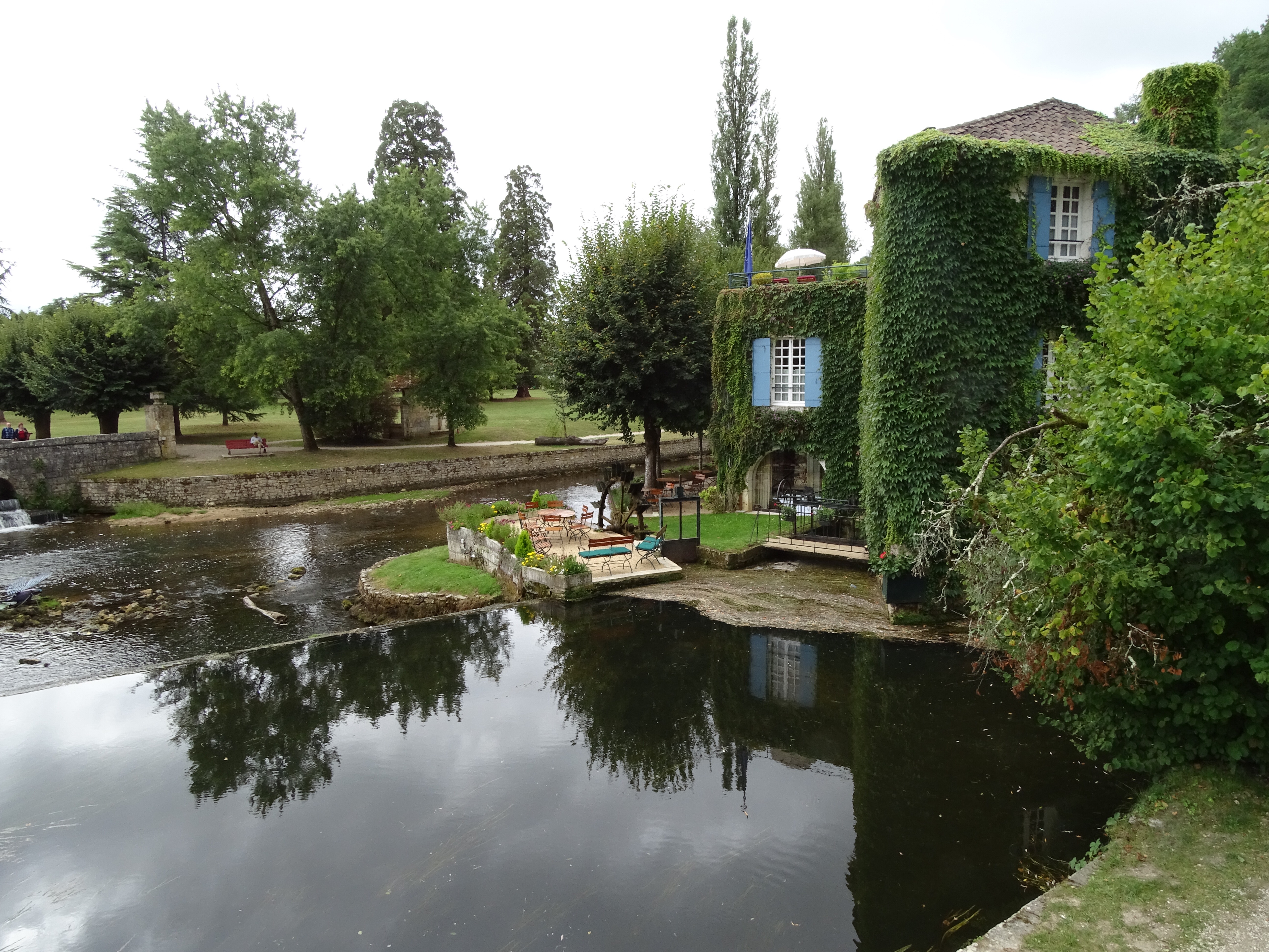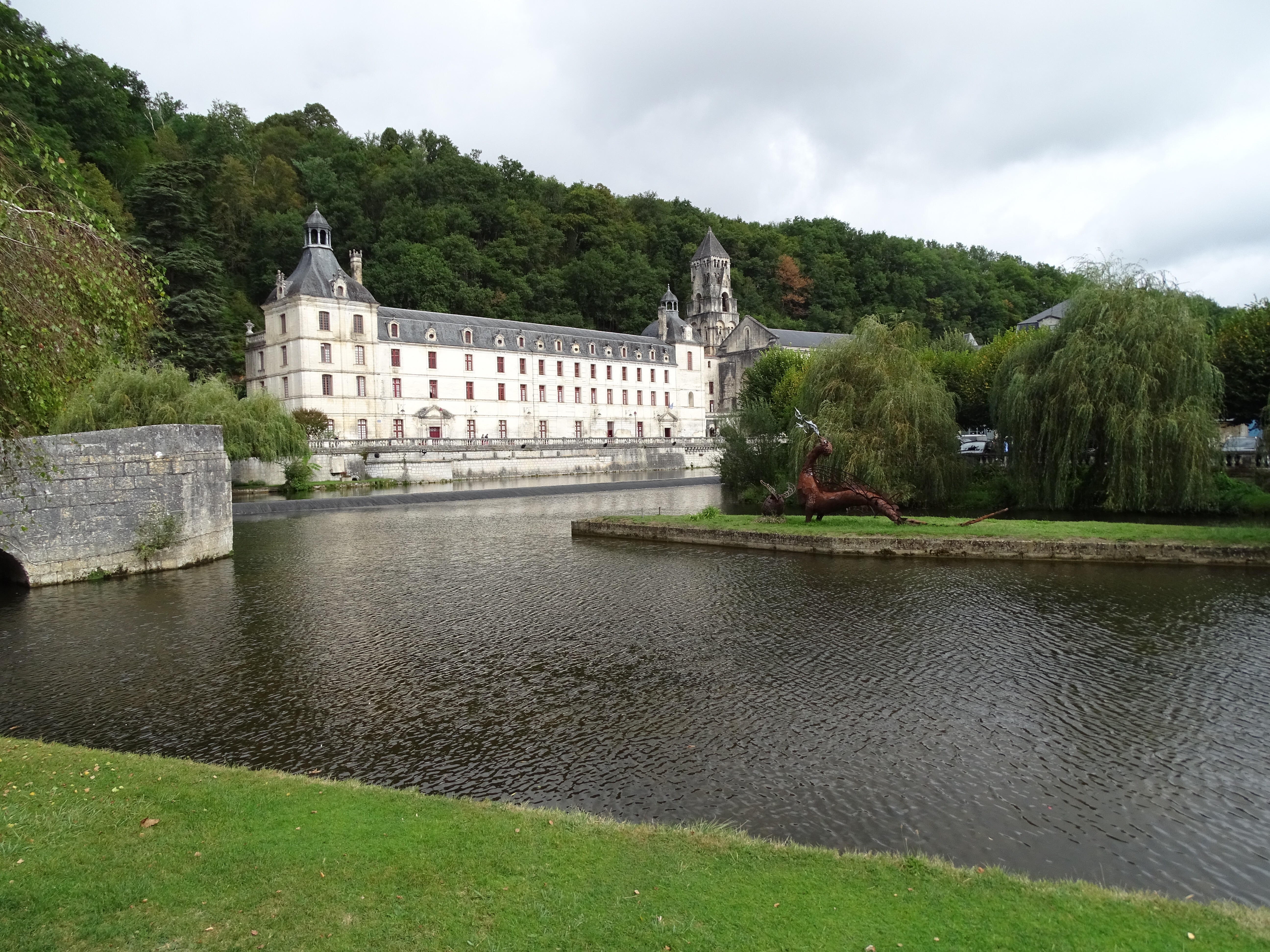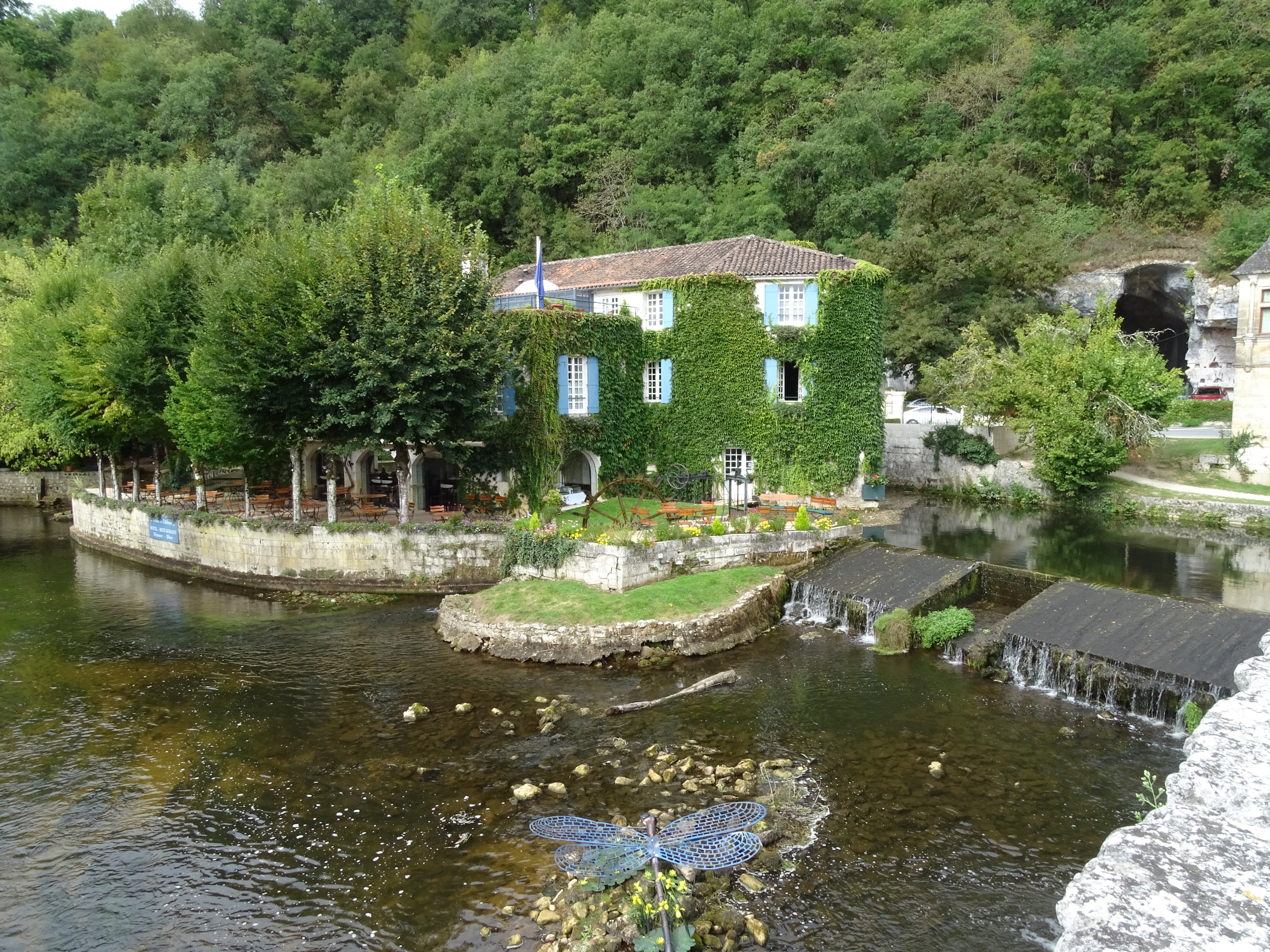 Today we visited Brantome a pretty town about a 90 minute drive to the north west of us. We were last here a few years ago as a family and decided to enjoy the hire of canoes and paddle around the outskirts of the town as many tourists do. Unfortunately a decision was made for the three daughters to share a canoe, working together isn’t one of their strengths and when they came to the part where you had to get over a weir, they got stuck on the top.