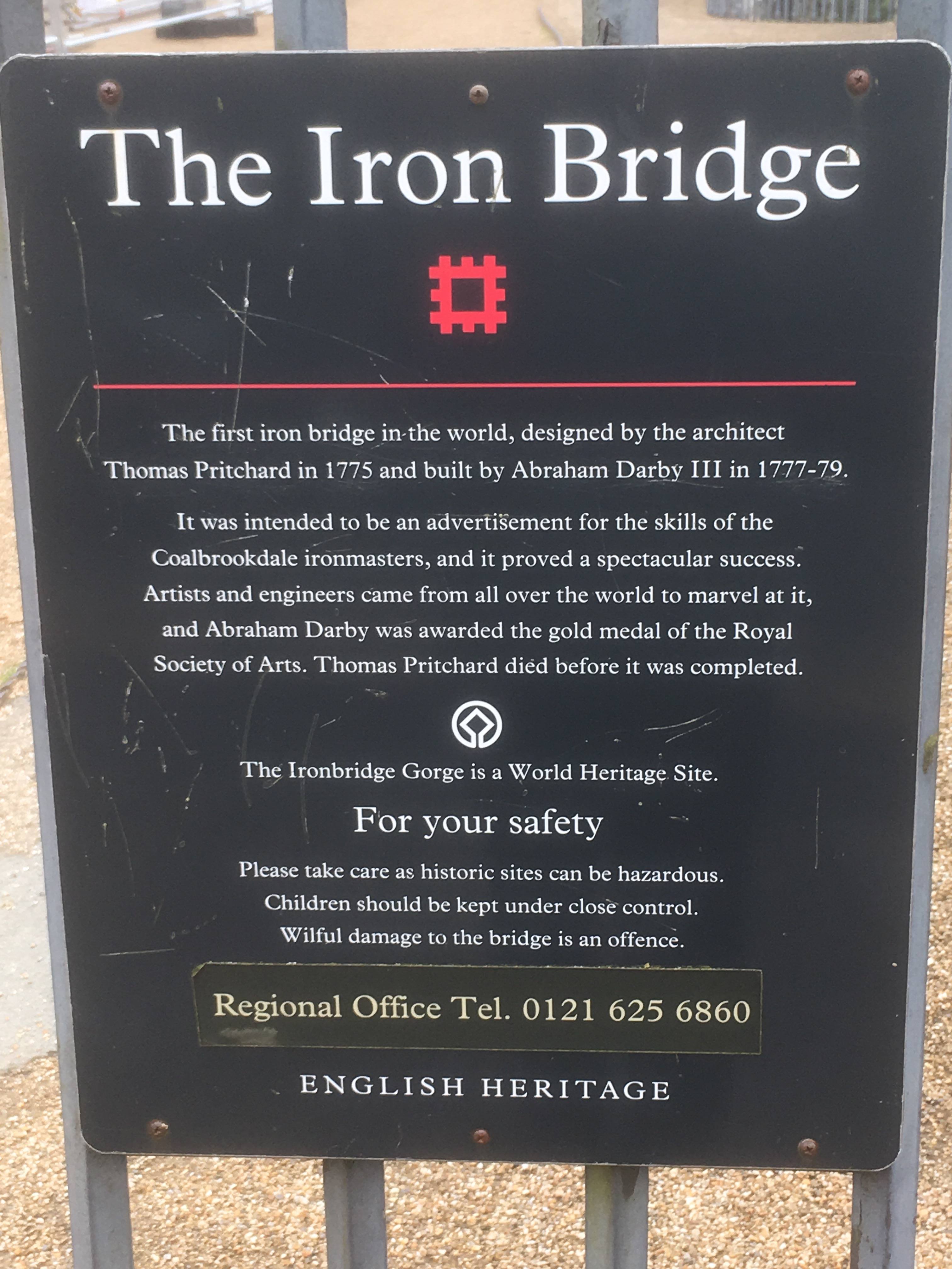 Ironbridge is known as “the birthplace of the industrial revolution” mainly becauseAbraham Darby first perfected the smelting of iron using coke, however the industrial revolution was stirring in many places at the same time. The famous Iron Bridge is a 30m cast iron bridge, the first in the world, it was built across the River Severn in 1779.