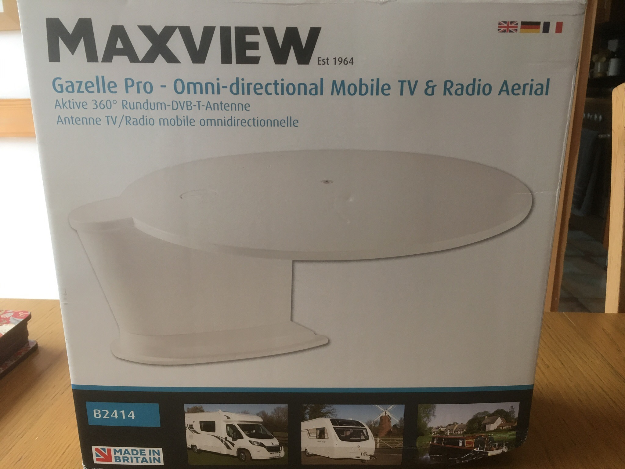 However as we want to continue to use Homer throughout the winter months and it’s already getting dark by 4.30pm I decided to fit a tv aerial to Homer so we have an extra choice of entertainment in the evenings. We already have a suitable tv, purchased some time ago from Aldi, so after the usual research on the internet I decided to buy a Maxview Gazelle Pro Omni Directional TV and Radio Aerial. There wasn’t a great variation in prices from the suppliers but in the end I opted to buy one from Rainbow Conversions Ltd and it was duly delivered.