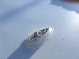 There’s always a slight dread of drilling holes through the shell of the motorhome but it had to be done, so after taking some measurements on the inside I climbed the step ladder, marked out the position to place the template and with a degree of intrepidation drilled the hole. A cry of “I can see light” from my senior DIY assistant reassured me especially when she added “where you wanted the hole!”