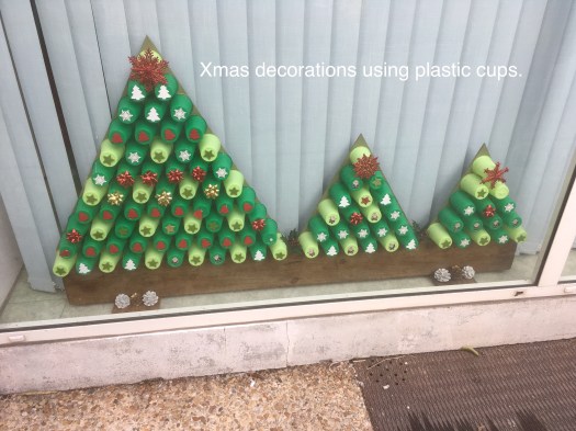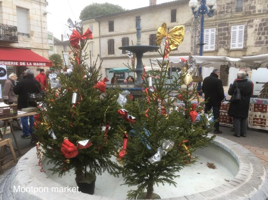 This was the first time that we had visited France together in December, alaways strange to see the trees and bushes bare of leaves. We visited a few of the local towns popping in and out of shops and supermarkets, what was so pleasant was the low key approach to Christmas. There wasn’t excessive in your face decorations, mostly just fir trees or fir branches decorated with ribbons or pretend presents, there wasn’t constant Christmas music being played and Christmas goods were displayed tastefully. What a pleasure after here in the UK where everything seems to start at the beginning of November. The following are a few photos taken over that time there.