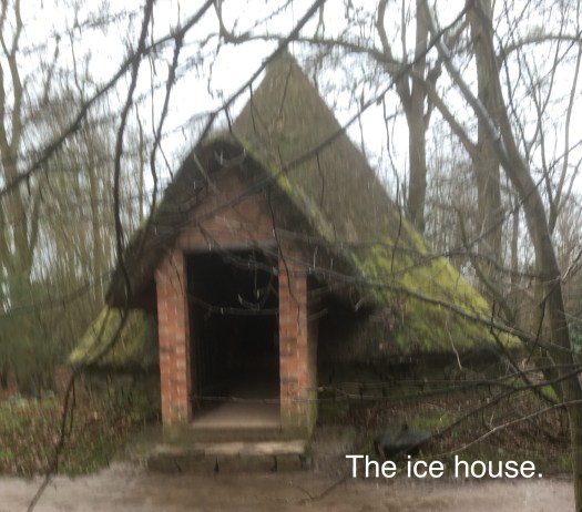 We hadn’t appreciated that the house wasn’t near the car park and visitors centre and it was about 3/4 of a mile along the winding path past the church, ice house and rotunda to the main house, no distance at all in the normal scheme of things but not too pleasant when the weather was distinctly miserable.