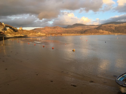 When we reached Barmouth we decided to continue our walk and we walked out of town and across the bridge over the estuary as started to do so the train came across too. Upon our return to town we found a nice cafe and had lunch, this was followed by a mooch around the shops and then a slow stroll back to Homer.