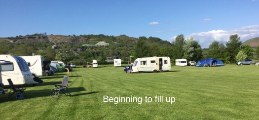 There are a reasonably equal distribution of the number of tents, caravans and motorhomes with people groups ranging from people on their own, retired couple, family groups etc so a good eclectic mix. It was as is often the case very amusing watching people set up. there are those who within 15 mins are set up and sitting outside with a cuppa, caravan era whose cars seem to be rammed with everything under the sun which is the carried into the caravan. A couple putting up a tent with the canvas inside out and another couple who had obviously an important pole to their awning missing and had to take it back down where it was kicked under the caravan. The units where it appears to be the mans role to set up and the woman waits on patiently, VW owners who seem able to pull up and throw down a check blanket sit down and immediately look at home. Where do we fit into that, I would say the first in the list, the electrics are plugged in, the kettle put on and if the weather is ok, the chairs put up, we try to be organised.