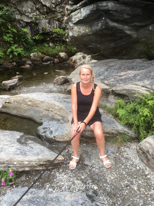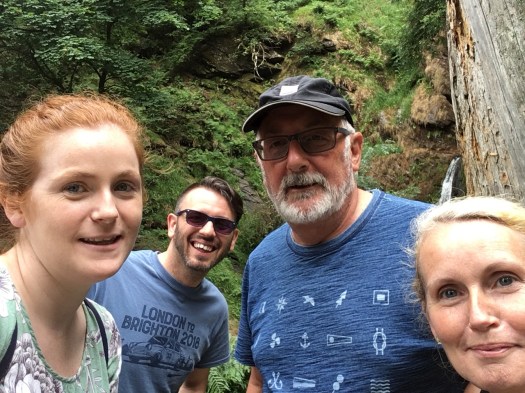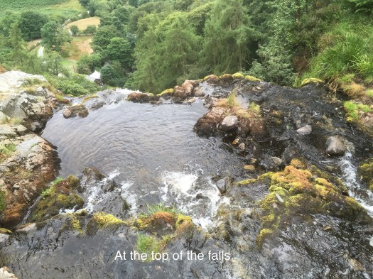 We had lunch in the cafe and afterwards took the long and in places steep walk up to the head of the falls, approx 20 mins if you are fit, the view from the top is spectacular and if you were brave or foolhardy enough I’m sure you could lie right on the edge of the falls and take a photo looking down, I’m not, so my photo is a little tame. There’s loads of pools at the top and the dogs enjoyed playing in them, Steph got her foot stuck in the mud and lost her trainer so had spend some time paddling to clean herself up. After making our way back down again we treated ourselves to an ice cream.