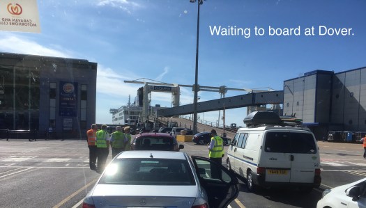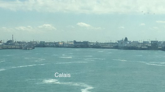 We were on the road by 7.30 am this morning and travelled due East on ordinary roads, many of which desperately need repairing until we hit the M20 which brought us into Dover by 10.00 am. Passport check and any other formalities were virtually non existent but we were given a boarding pass for the 11.10 ferry instead of the 12.10 which suited us fine and we were one of the first vehicles to board. The crossing was smooth and the sun shone brilliantly and as the lounge was empty when we boarded we sat at a table with a view of the bow of the ferry and were able to watch the multitude of other ships at sea and watch us dock in Calais.