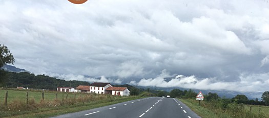 We set off this morning with the view of the Pyrenees filling our windscreen, often they were obscured by clouds.