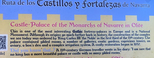 Last night we Googled places to visit in the Navarra region and one town Olite came up as being a place to visit. It meant driving back somewhat in the wrong direction but as time is our own we didn’t worry. The historic part of the town was indeed good to look at but we didn’t fancy paying to go in the Royal Palace and we would have had to leave Layla in Homer and it was far too hot.