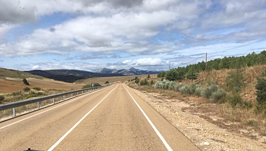 Onwards we drove along small country roads gaining height all the time and eventually we drove out into sunshine, we stopped to do a little shopping in a town Aguilar de Campoo, and decided we might as well have lunch in Homer before continuing. As we sat there the car park began to fill up rapidly, cars parked on both sides of leaving very little space, I became more and more concerned we would be trapped there until the Spanish people who were parking returned from long lunch breaks. So we hurriedly packed up and I managed to squeeze out of our space and escape the car park.