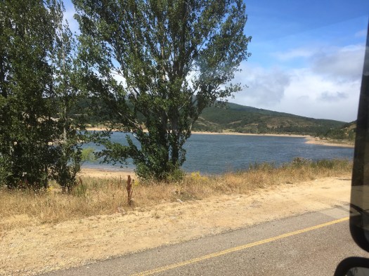 A cooler start to the day today, we found ourselves just below the cloud level so it was a dry start to our drive, but as we moved one we found ourselves climbing to an even higher level and drove through the clouds. We headed to an area with a large reservoir the surrounding landscape reminded me of mid Wales and it’s reservoirs.We parked up and went for a walk along the reservoir and Layla was befriended by a large dog that was roaming free.