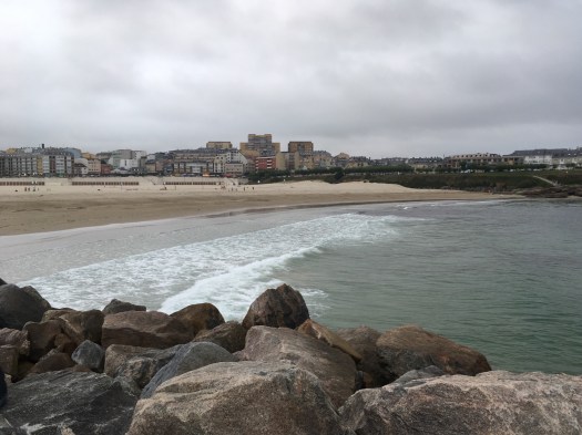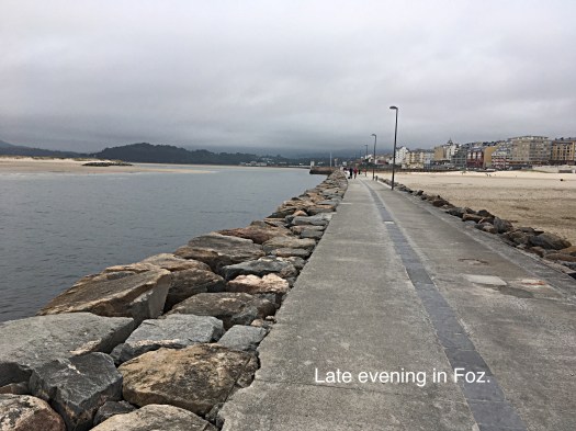 Foz is a small town with a leisure and fishing harbour which open out into the Atlantic ocean and beautiful sandy beaches, we are parked up on a large grassy parking area within metres of the town and the front of Homer is 10m from the sea wall. The view is wonderful and changed over the afternoon as the tide went out.