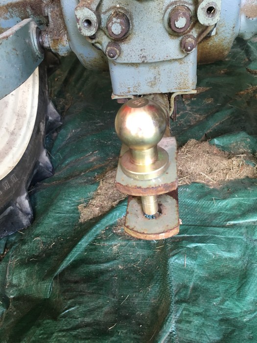 Within a short time of being back I was mowing the grass around the house and then spent 30 minutes under the tractor with a lump hammer and a tin of WD 40 trying to free a bracket so that I could attach a new tow ball.