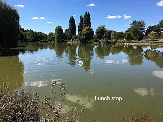 After the lost card incident we stopped outside a small village for lunch, it had a parkland area with a lake and someone had a small holding adjacent with a variety of animals.