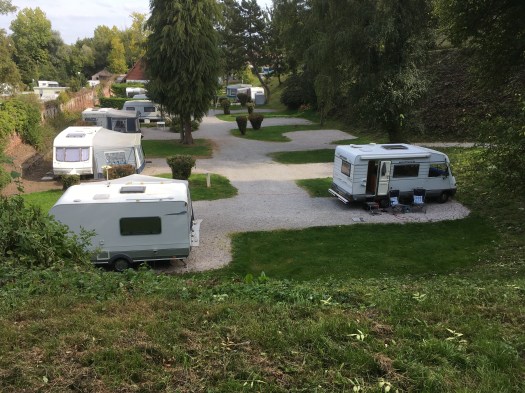 We have moved inland a short distance to Montreuile sur La Mer, which hasn’t been by the sea for centuries as the river estuary silted up a long time ago, we have treated ourselves to a two night stopover on a camp site in what were the former walled gardens of a chateau. The site is just below the walls of an ancient town and we have saved the pleasure of visiting it until tomorrow, instead this evening we went for a long walk along the river that flows below the town.