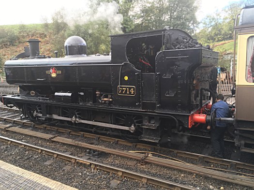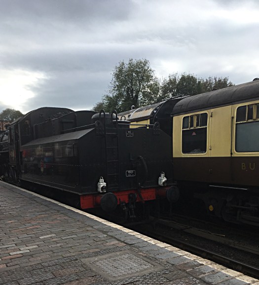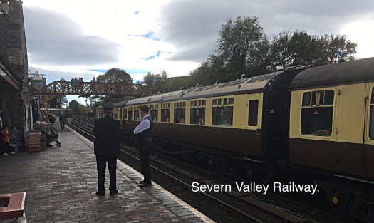 After we had toured the historical streets and taken a ride on the cliff railway we crossed the modern pedestrian bridge to the railway station the northern terminal of the Severn Valley Railway a heritage steam railway. There was one special buffet train waiting that departed and a regular scheduled train steamed into the station so in twenty minutes we saw some action.