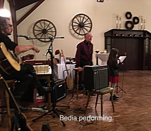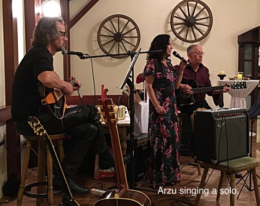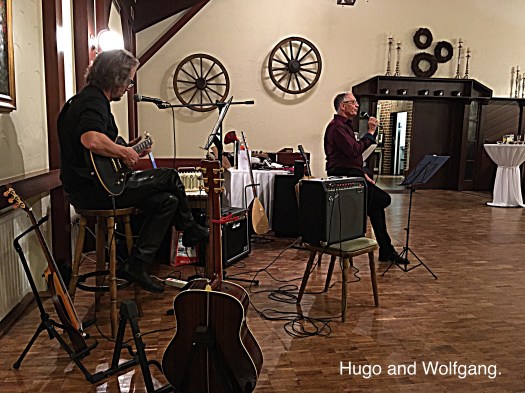 The first guests began to arrive around 6 pm and when all forty people had turned up Wolfgang thanked everyone by name for being there including us who had travelled all the way from England. Then he and a friend Hugo commenced the evening by playing and singing a few songs before they were joined by daughter Bedia and Arzu who both sang solos.