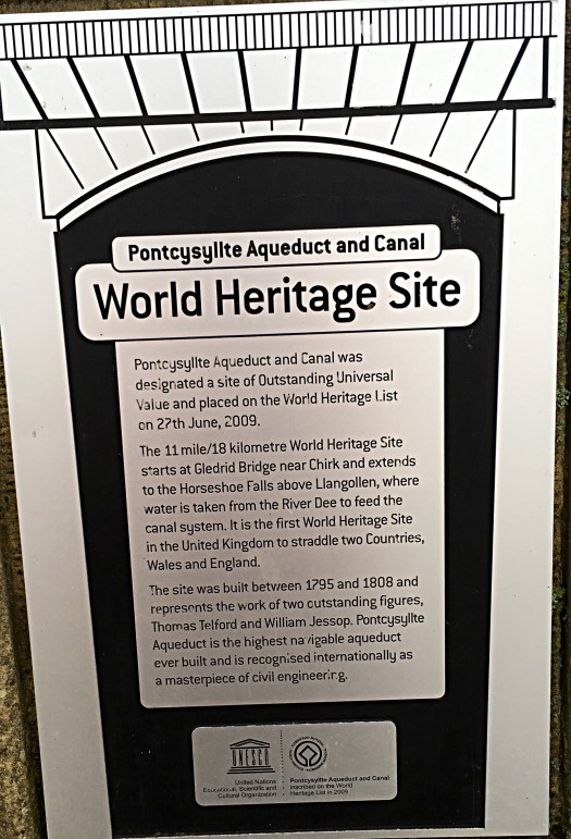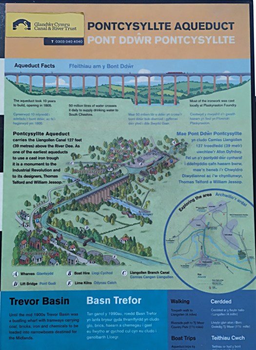 The Pontcysyllte Aqueduct was designed by Thomas Telford and William Jessop to enable the canal to cross the River Dee and have access to Llangollen. It has 18 arched stone pillars and is topped with a cast iron structure to carry the canal, it took 10 years to build and was completed in 1805. It stands 38m high and is now the oldest and longest navigable aqueduct in GB and the highest in the world.