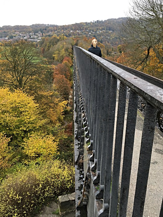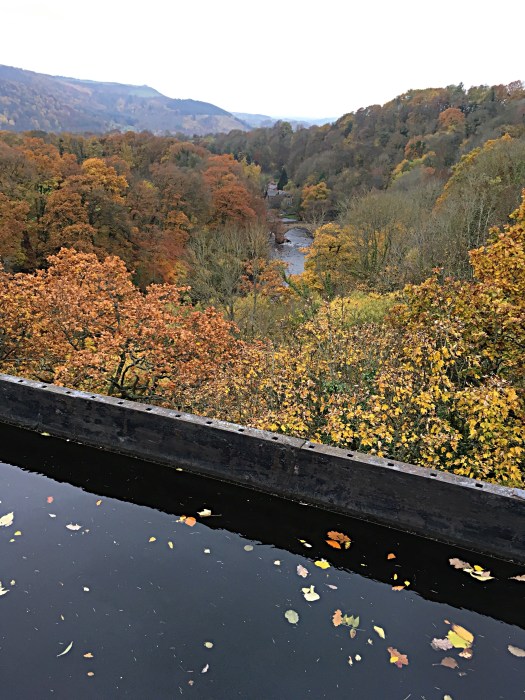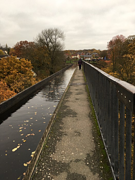 I have seen it on TV many times and seen the narrow boats crossing where to one side there is no railing and a sheer drop to the river below, I’ve often wondered how I would feel about crossing it and am pleased to say that walking across on the tow path with a railing to the side didn’t worry me at all. The autumn scenery was beautiful and one day I hope to return and cross by narrow boat.