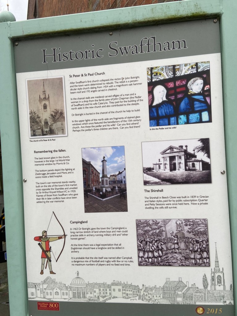 Today we walked into Swaffham a pleasant market town with a good range of historical buildings, it is also well served with three large well known supermarkets.