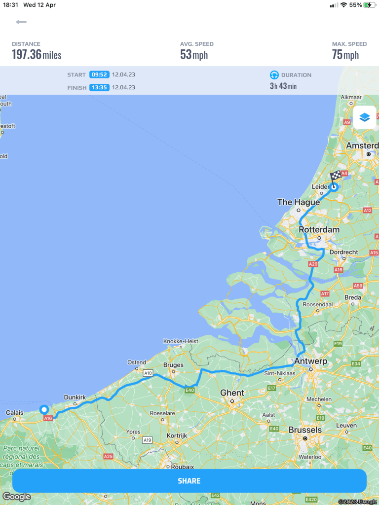 As you can see we drove a long way today, non stop!! we hadn’t intended to but it wasn’t until we were in the last 20 miles of our journey we passed a parking place or services, we struggled like this last year driving through Belgium where again the road surfaces were dire.