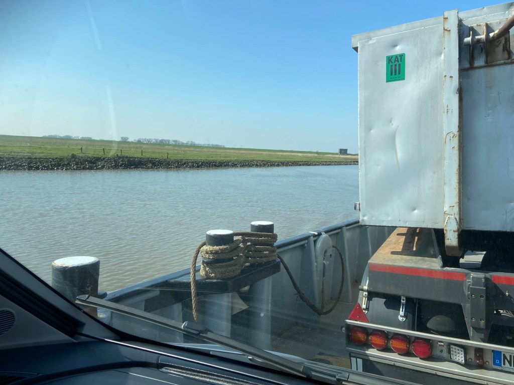 From there we drove toWischhaven to catch the roll on roll off ferry across the River Elbe to Gluckstadt which cut down on the distance we had to travel, we waited 45 minutes for our turn to board and it was a 30 minute crossing. The cost was 28.50 euros, they even charged 1 euro for Layla and non of us got out of Homer!!