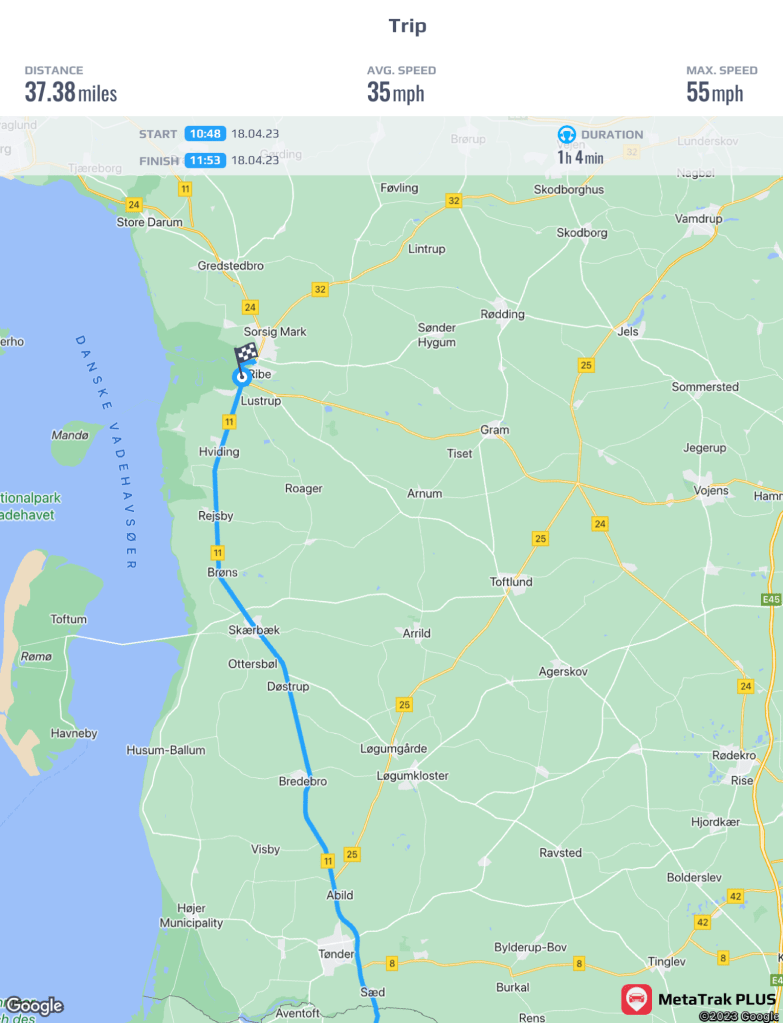 Another day started with domestic duties as we filled up the LPG tank and the Ad Blu tank, we are having a few nights without electric hookup so it’s important to keep the LPG filled as we use it for the central heating, showers as well as for cooking. Once done we headed north to Ribe in Denmark.
