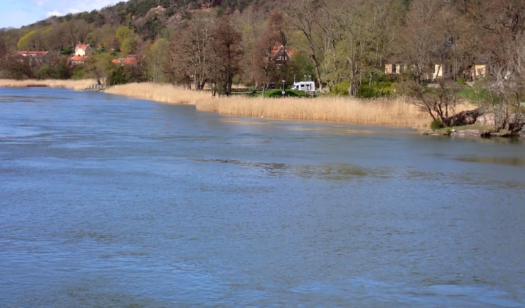 Today after taking the ferry we drove south on the motorway soon entering Sweden, the speed limit was 70 mph so we were able to cover a longer distance on a relatively empty motorway. We are Kungalv a city on the river Gita alv to the north of Gothenburg. The site is next to the river and in the shadows of a very impressive castle.