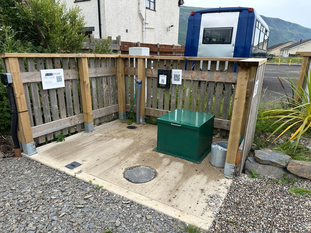 We are staying on a newly created motorhome stopover with all the facilities we need, we have paid £5 but you can pay for electricity, water etc separately, the payment system is automated and too complicated everyone struggles to know what to do, probably evidenced by the “ honesty” box in which you can pay by cash.