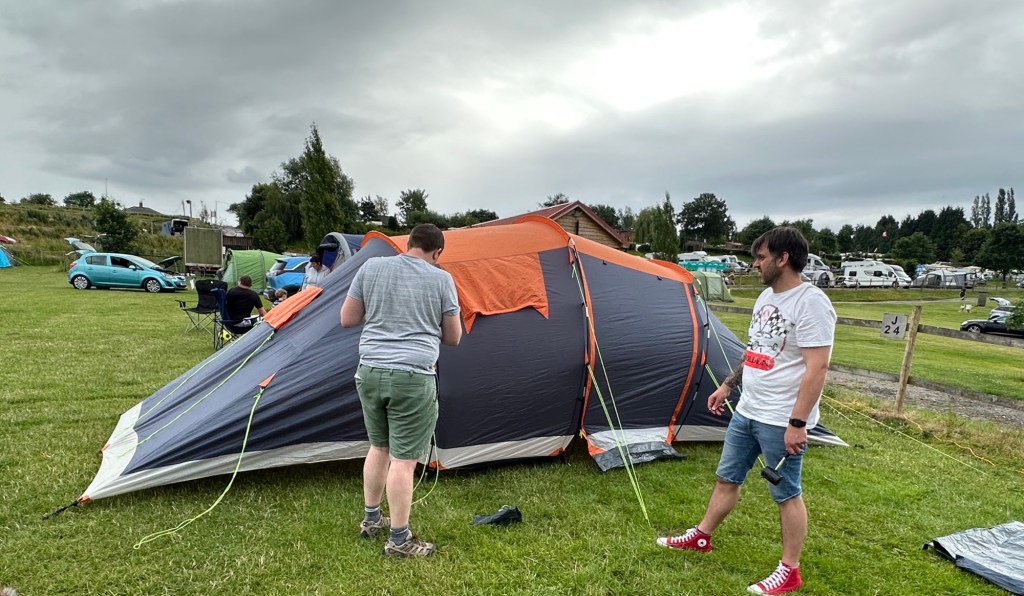 They say many hands make light work but when people haven’t put their tents up for a while sorting out which pole goes where was quite amusing, Sophie and Zac’s tent came without tent pegs, thankfully there were enough spares from others😊👍