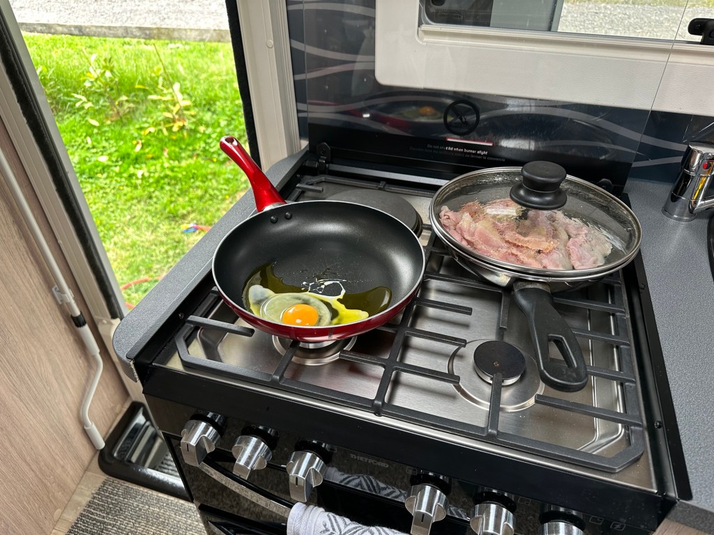 Of course as tradition demands each morning starts with a range of breakfasts cooked in the van.