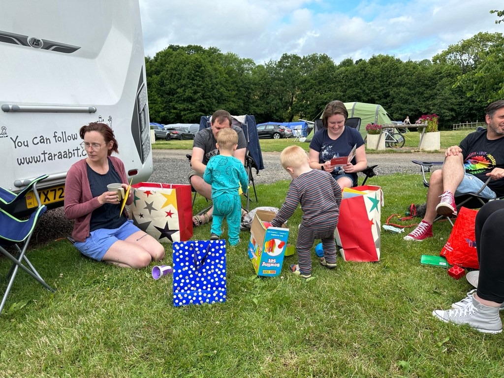 We had a family gathering at the above campsite to celebrate on Saturday the 2nd birthday of our twin grandsons Ben and James and the 40th birthday of son in law Will. Along with our van we had 4 tents dotted around the site but thankfully in easy reach of each other as this is an enormous site.