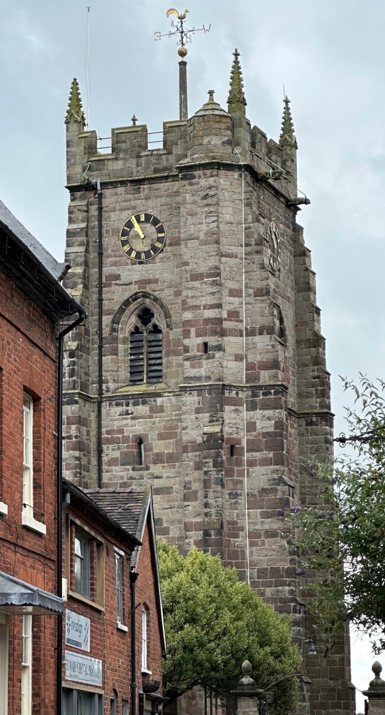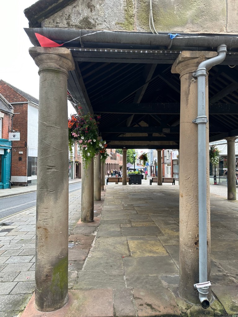 The lane outside the campsite is single track and is only used by the local farmer and the residents of a few houses along its length, the lane leads directly to Market Drayton and is approx 1.5 miles long so it was a simple and safe way to walk into town this morning. Market Drayton is close to the Cheshire and Staffordshire borders on the River Tern and the Shropshire Union Canal skirts it. The town is mentioned in the Domesday book and in 1245 it was granted a charter for a weekly market.In 1651 a great fire destroyed 70% of the town, the Buttercross in the centre of town still has a bell on top for people to ring if there’s ever another fire ( I’m sure phoning 999, would be more efficient) .