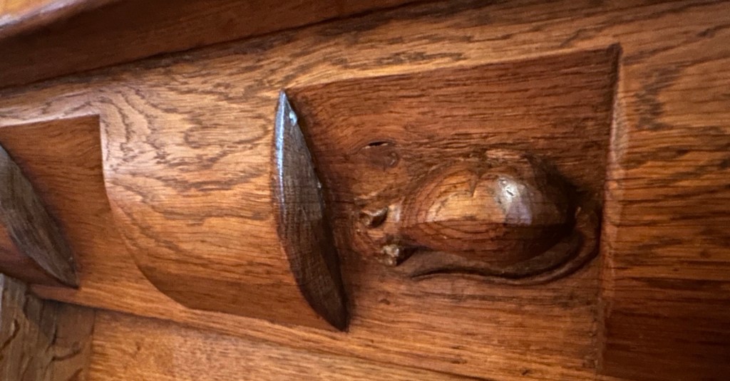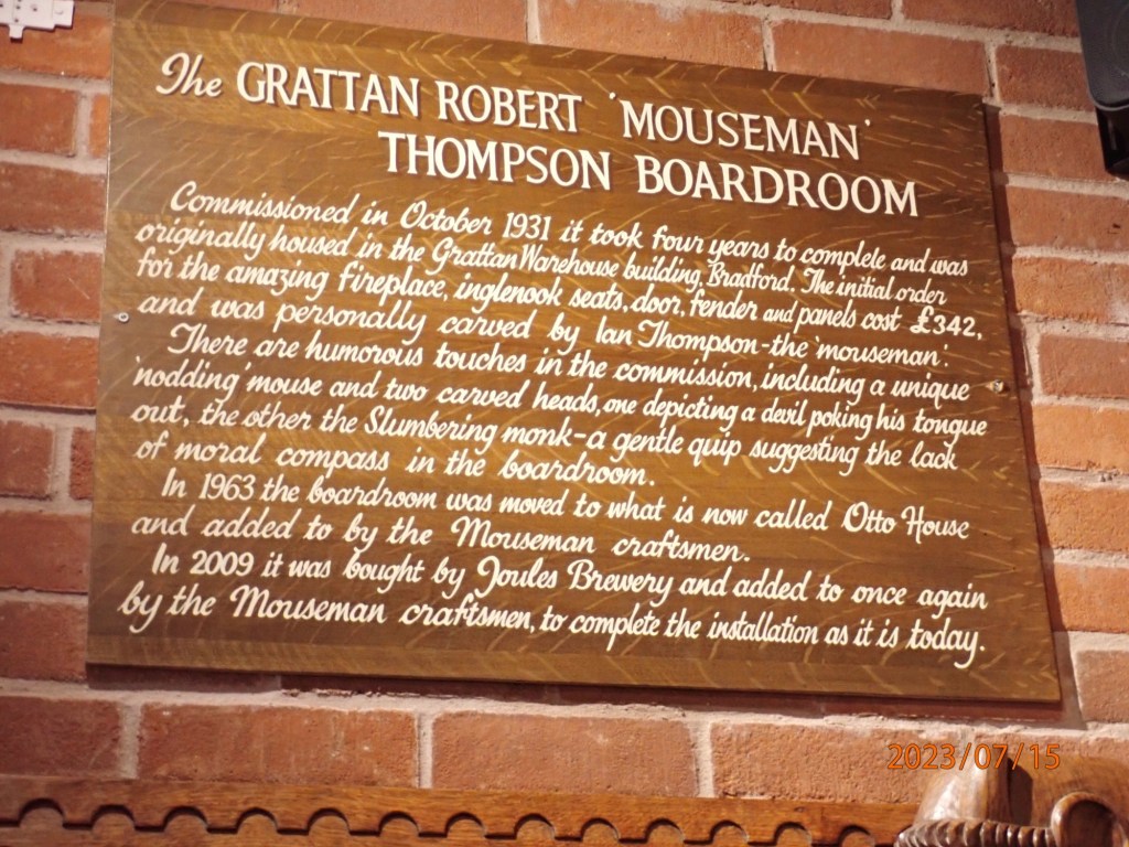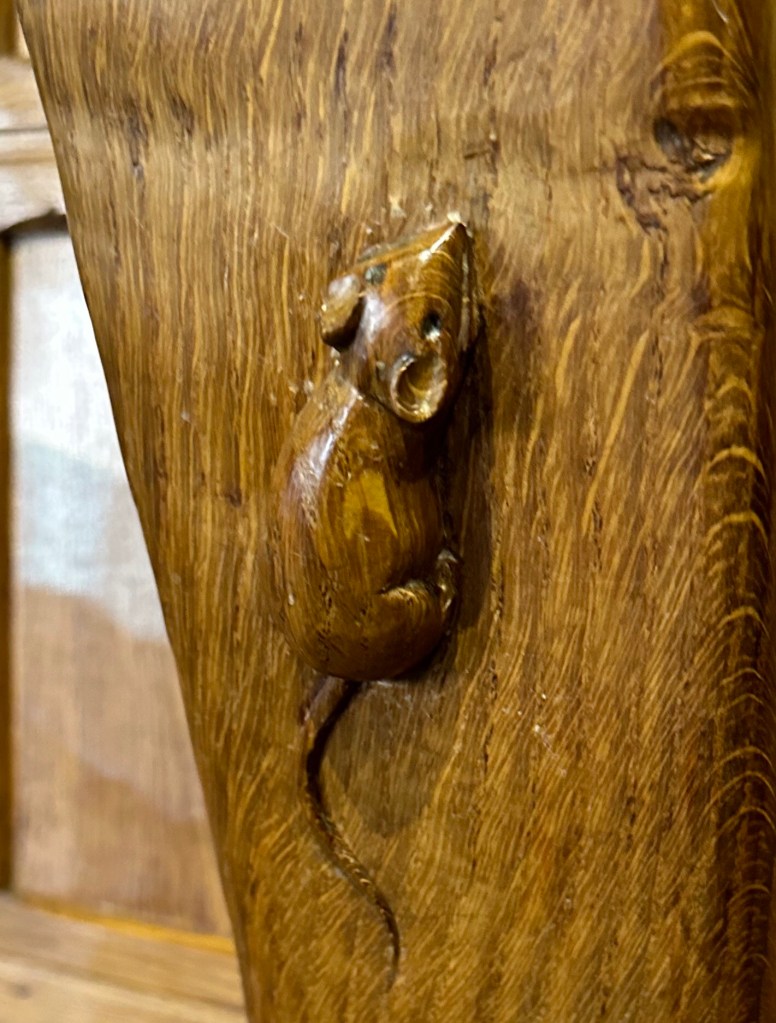 We decided to have lunch in the pub (strongly recommend, very nice meals). We sat in the Mouseroom, This room was installed in 2010 with fantastic panelling, church pews, it has 7 carved mice, a nodding mouse with some furniture from the Mouseman apprentices. If you don’t know about the Mouseman look up Robert “mouseman Thompson of Kilburn.
