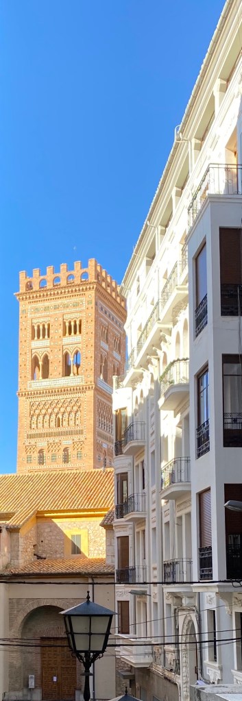 The Torre de El Salvador is a 14c Mudejar tower and has an intricate facade and stairs to the top.