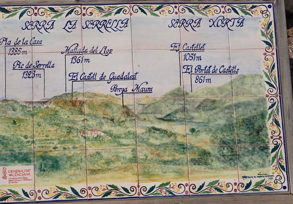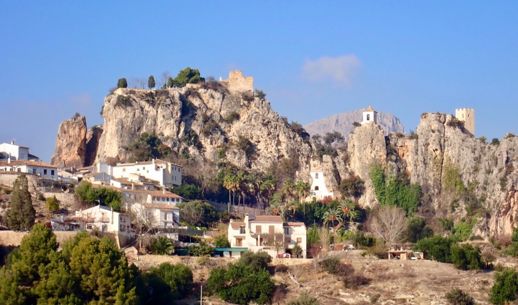 Next door to the museum was a shop selling local artefacts and food stuffs, wine, nuts, oranges, lemons, honey etc . They had for sale pottery and also cotton rugs, Michelle took a liking for two to replace the ones in Homer that one day recently had a bath in pineapple juice😵💫 I found a bottle of Oporto port which was also purchased.We drove on from there stopping on occasion for photo opportunities until we reached Castell de Guadalest.