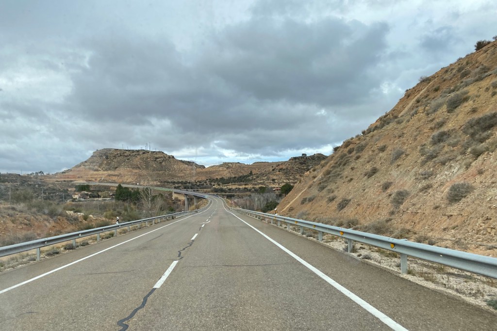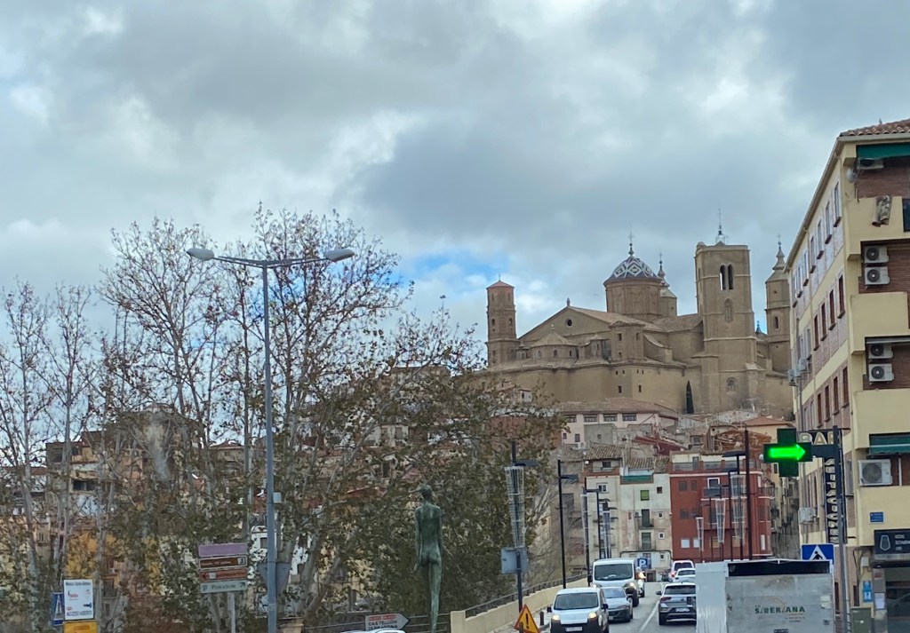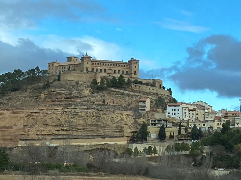 We drove this morning firstly to a town called Alcaniz where we topped up with LPG and shopped at Lidl, the sat nav directed us on our onwards journey but sadly it didn’t know the road we needed to take was closed, every redirection it suggested took us back to the closed road so I drove off into the distance until it decided it had a new route for us. Alcaniz was very busy, we would have liked to have stopped as it looked quite interesting, Michelle took a few shots as we zig zagged around the town.
