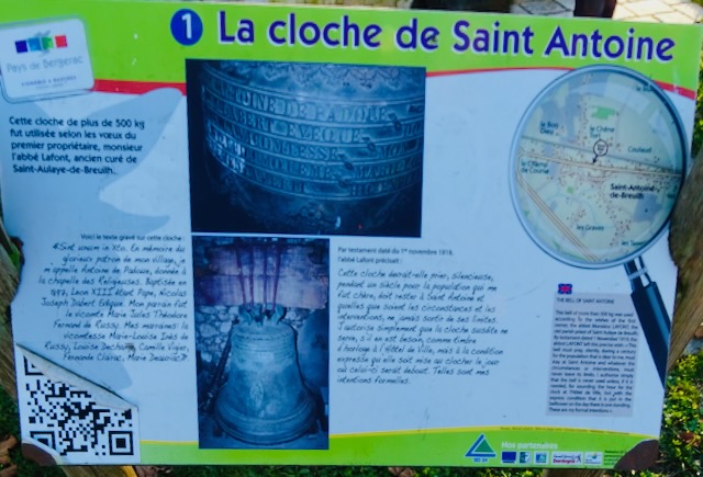 In the information above it does have an English explanation about the bell but unfortunately I can’t enlarge it. From memory it went along the lines that approx 100 years ago it was decreed it shouldn’t be rung unless it was remounted on a church and then only rung for one time.