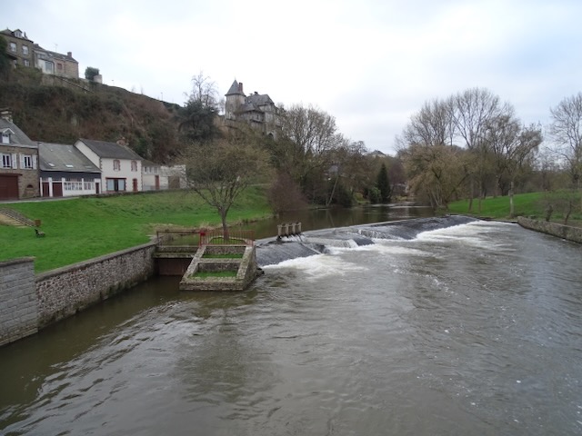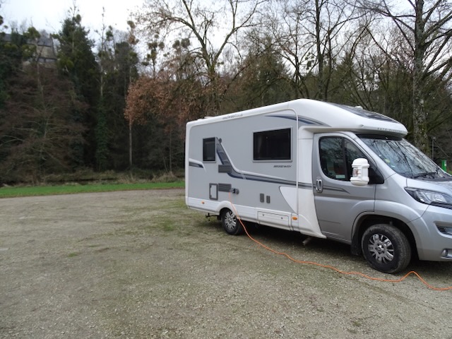 From Sables sur Sarth we drove to tonights stopover at Ambrieres-Les-Vallees a nice picturesque aire below the town alongside the river.
