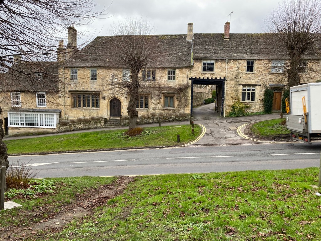 The buildings are built using Cotswold stone.