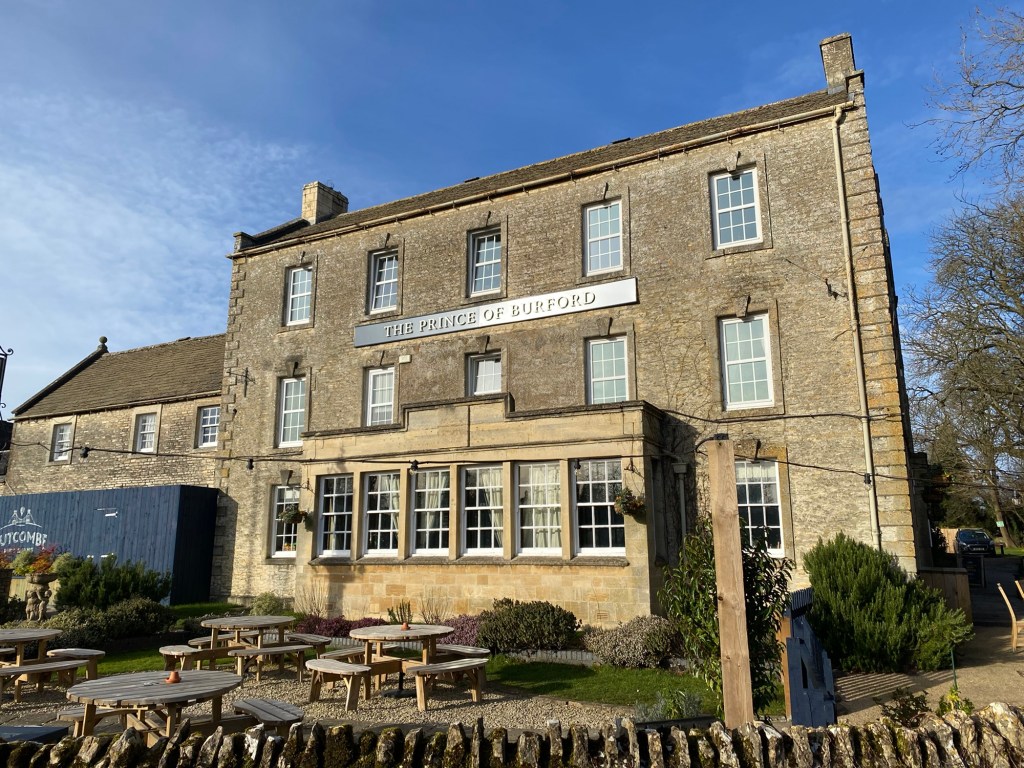 Today Feb 1st is my birthday and we were joined here on site by my sister and brother in law and then we went for a very pleasant lunch at a nearby pub/ hotel “The Prince of Burford” a part of the Butcombe Brewery chain of pubs. We are members of their loyalty scheme and as it was my birthday they gave us a rather nice bottle of Prosecco.