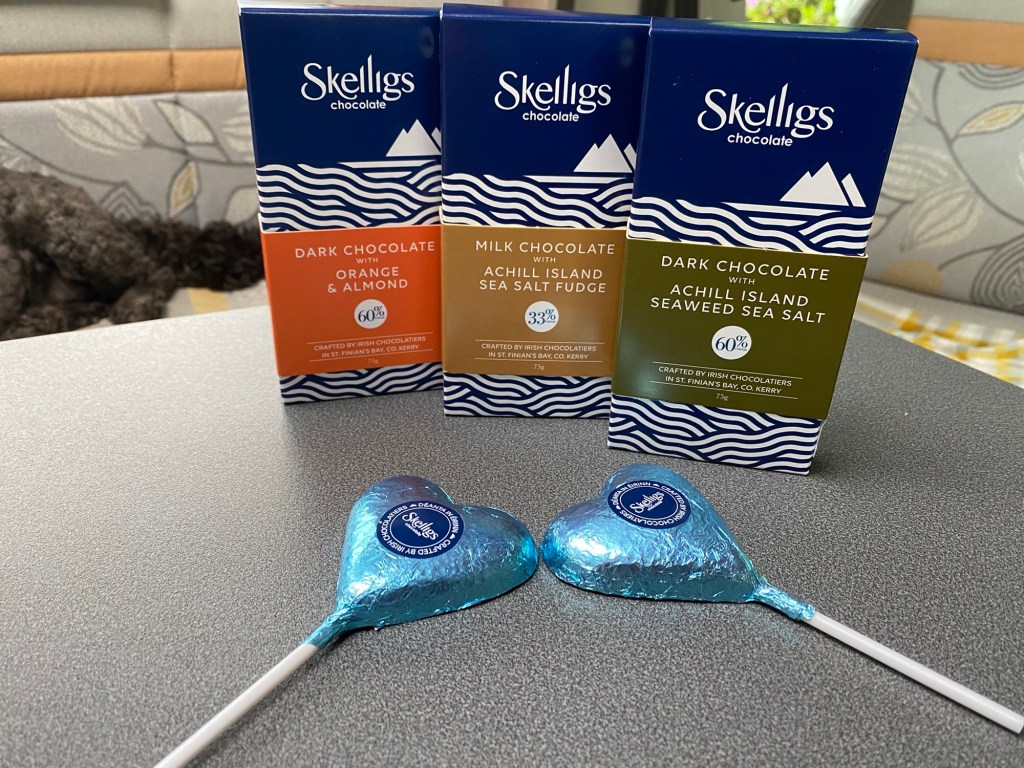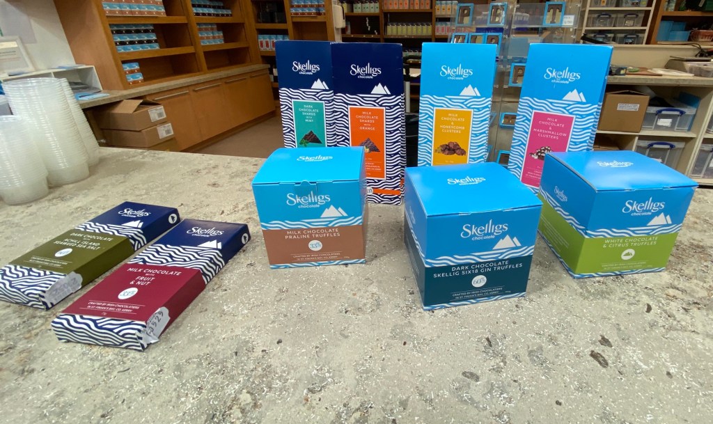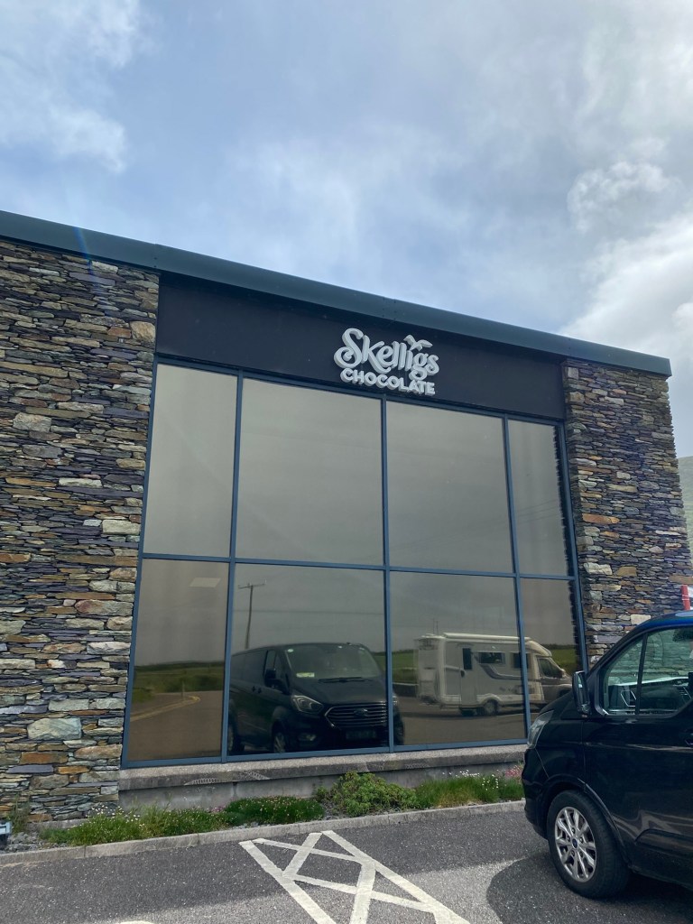 This morning we continued our drive around the Ring of Kerry but after a while took a side road off to St Finian’s Bay to find the Skelligs Chocolate Factory.